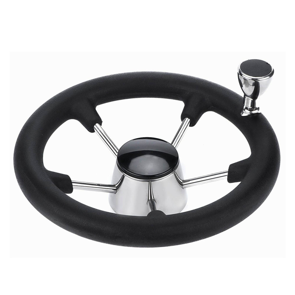 Upgrade your boating experience with our 14" Boat Steering Wheel, featuring a sleek destroyer look. The anti-shock, water-resistant grip is permanently moulded to withstand heat and harsh weather, ensuring a secure hold. Its ergonomic design and assist knob provide quick and responsive steering, enhancing comfort and control.