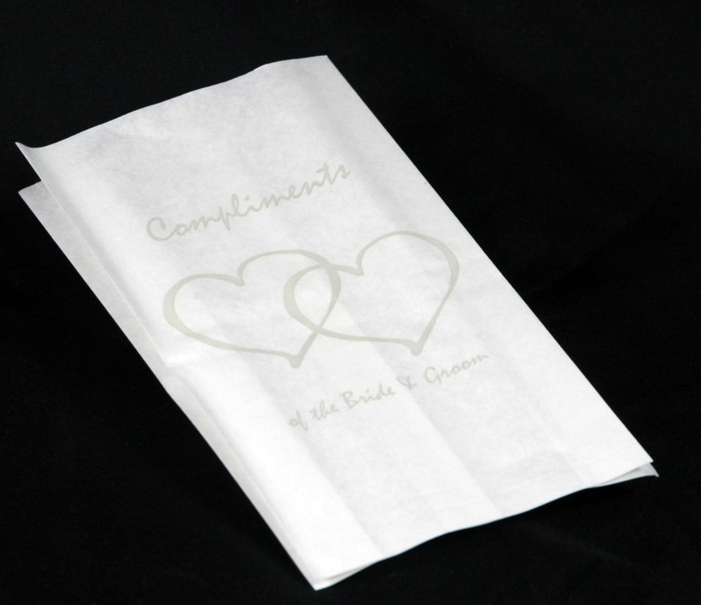 200 Pack Wedding Cake Bags Greaseproof Wax Paper Slice Take Home Favour Silver Heart n Message