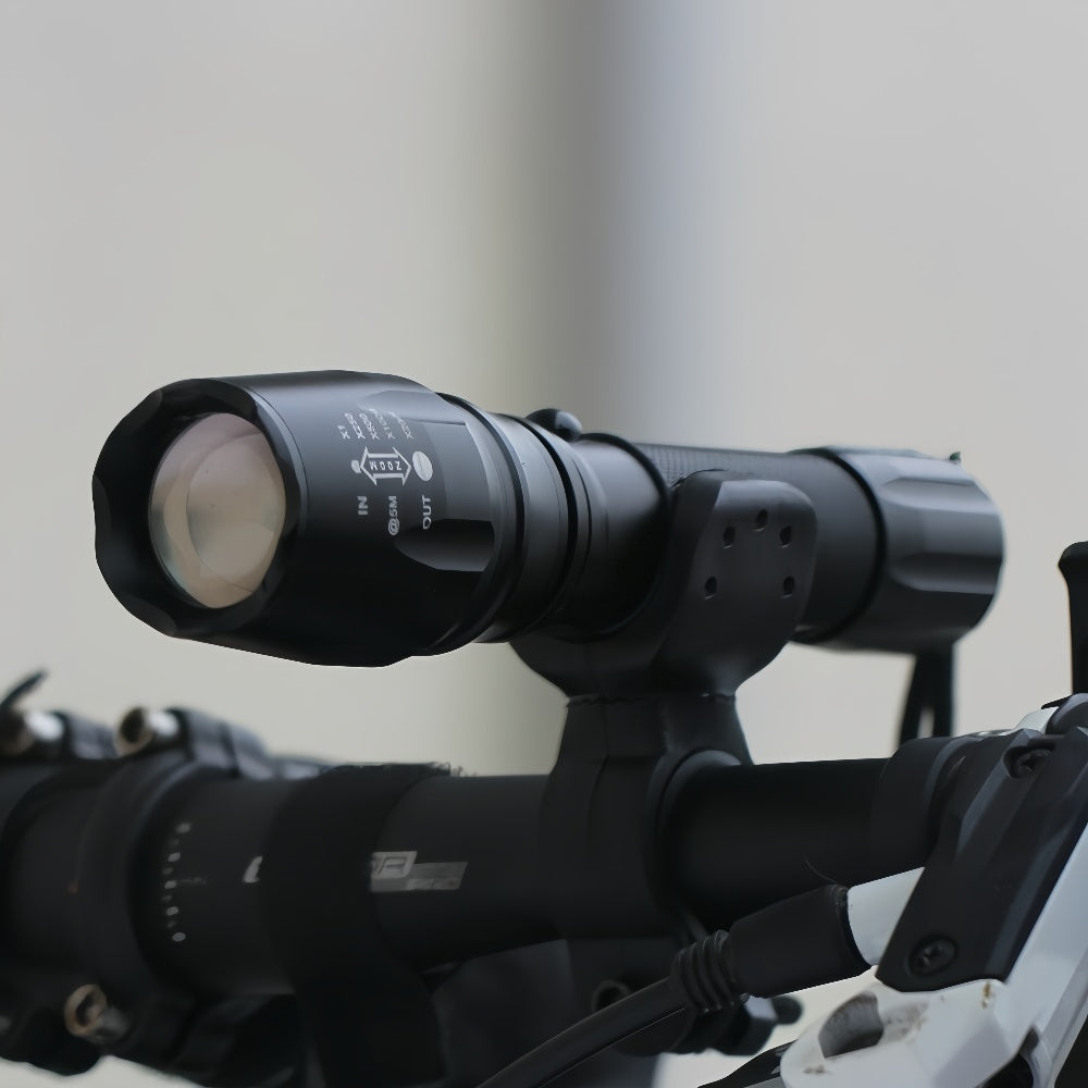 Constructed with a durable aluminum alloy body, this flashlight is built to withstand the rigors of outdoor use. It features a T6 LED model that delivers powerful brightness, with a focus adjustment that allows you to stretch the head of the flashlight to change the beam shape. With a maximum distance of 100 meters, this flashlight ensures you can see clearly even at long ranges.
