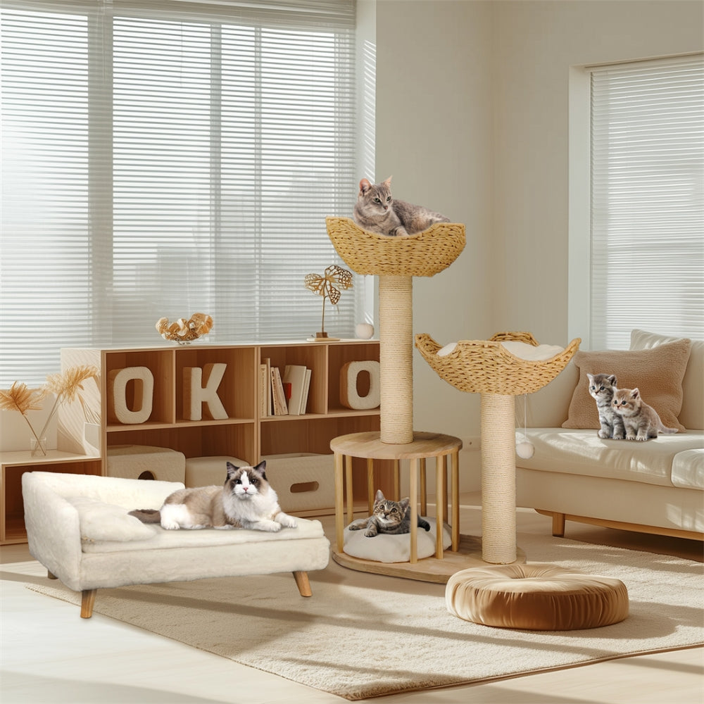 This three-level cat tree is ideal for families with multiple cats, offering plenty of space for resting, playing, and exploring. It provides the perfect outlet for cats to release energy and maintain their overall health while staying entertained. Whether they’re climbing, scratching, or lounging, your cats will love their new activity center, and you’ll appreciate the protection it offers for your furniture.