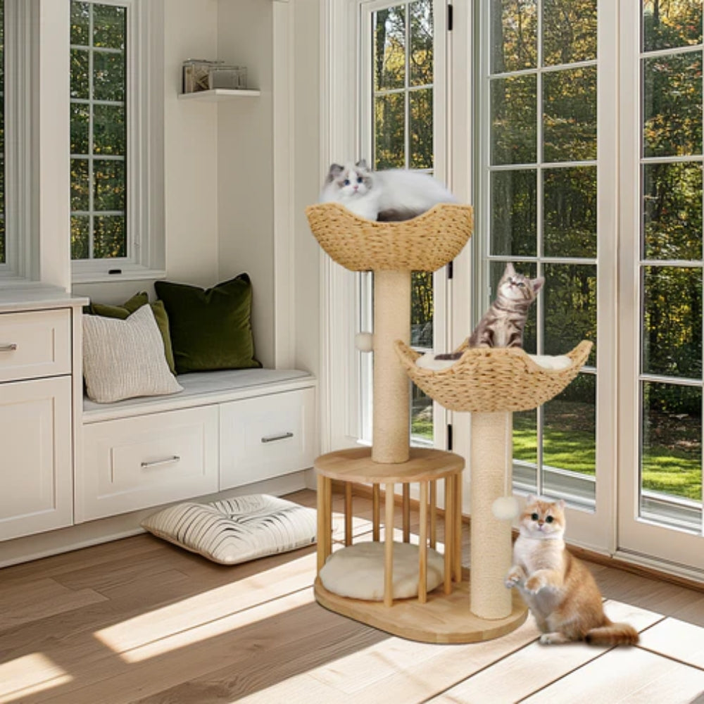 The Scratching Tree is the perfect solution for your feline friend’s need to scratch, climb, and play. This multi-level activity center is thoughtfully designed with both comfort and entertainment in mind, offering a stable and durable structure for peace of mind. With its natural wood accents and clean design, this cat tree blends seamlessly into any home décor while keeping your cat active and happy.