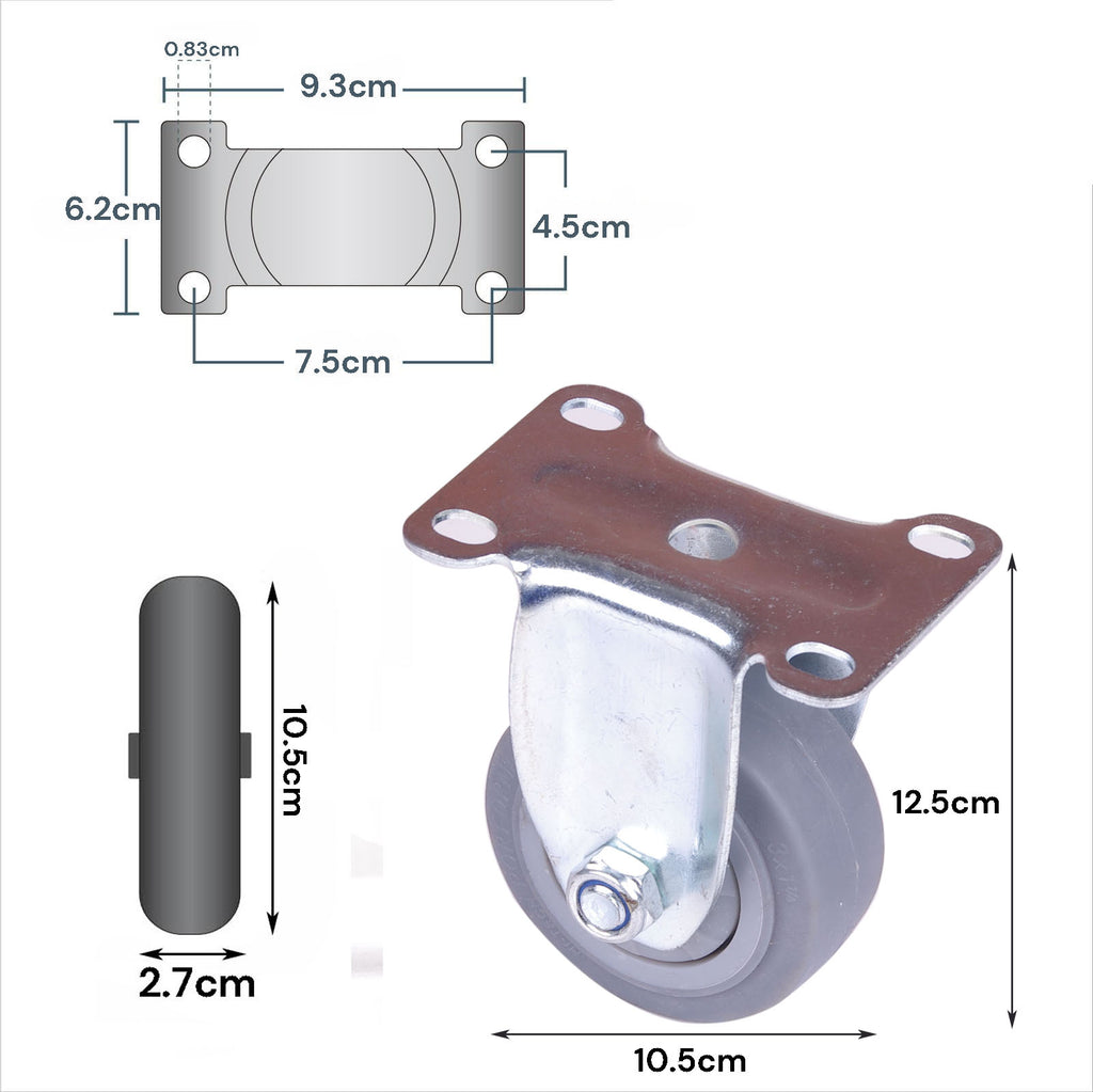 4 inch fixed caster wheel: 12.5cm x 6.2cm x 9.3cm