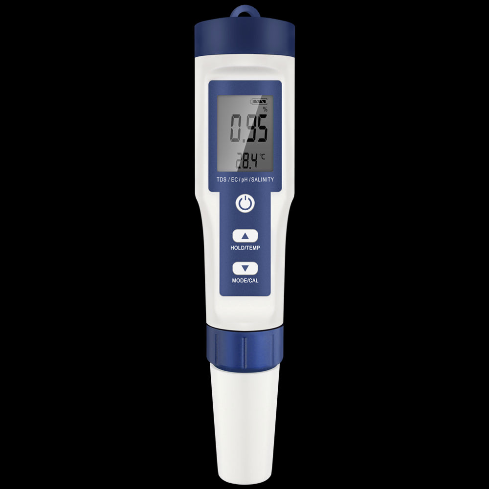 This 5-in-1 water quality tester is a versatile and essential tool for measuring pH, conductivity (EC), total dissolved solids (TDS), salinity, and temperature of liquid samples. With just one unit, you can obtain comprehensive data to ensure optimal water quality.