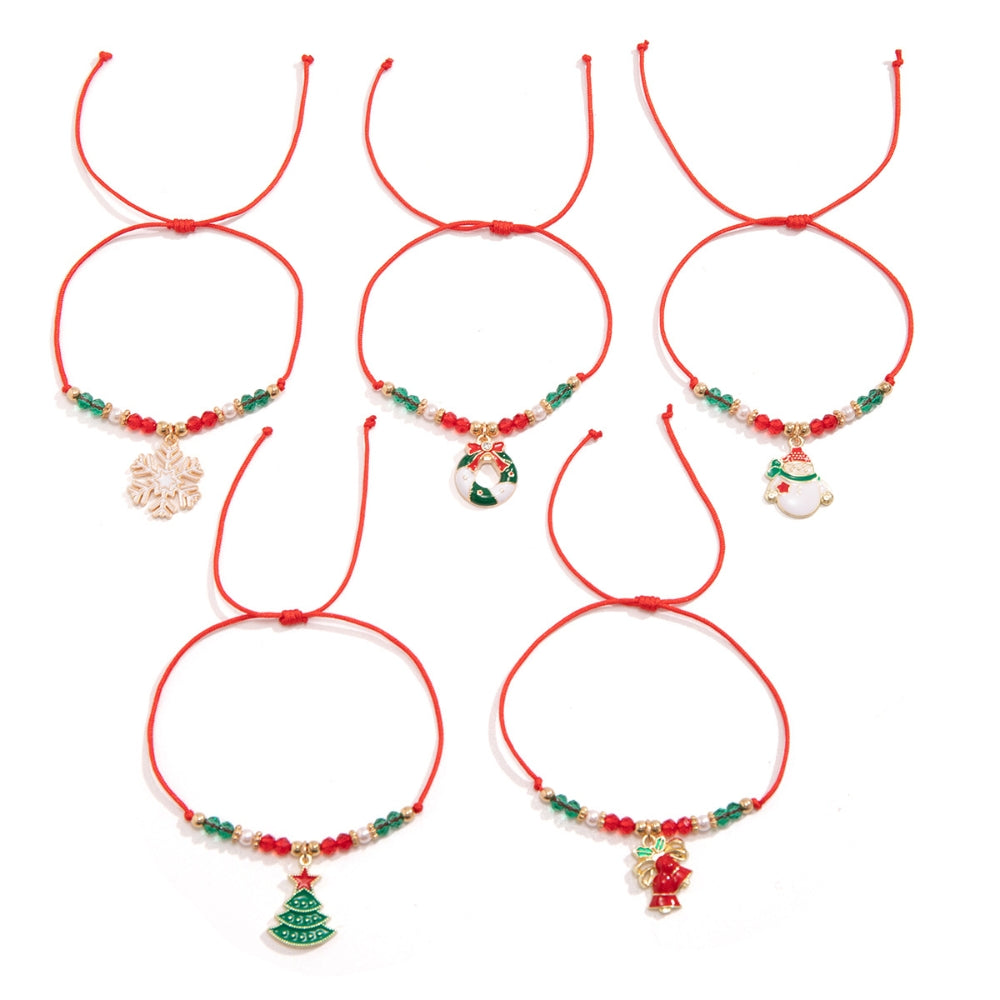 Add a festive touch to your holiday ensemble with this set of 5 cute Christmas-themed bracelets. Each bracelet features a unique charm, including snowflakes, Christmas trees, and holiday-themed pendants, all beautifully detailed to spread the holiday cheer. Designed with crystal beads and vibrant colors, these bracelets are perfect for adding some seasonal sparkle to your wardrobe.