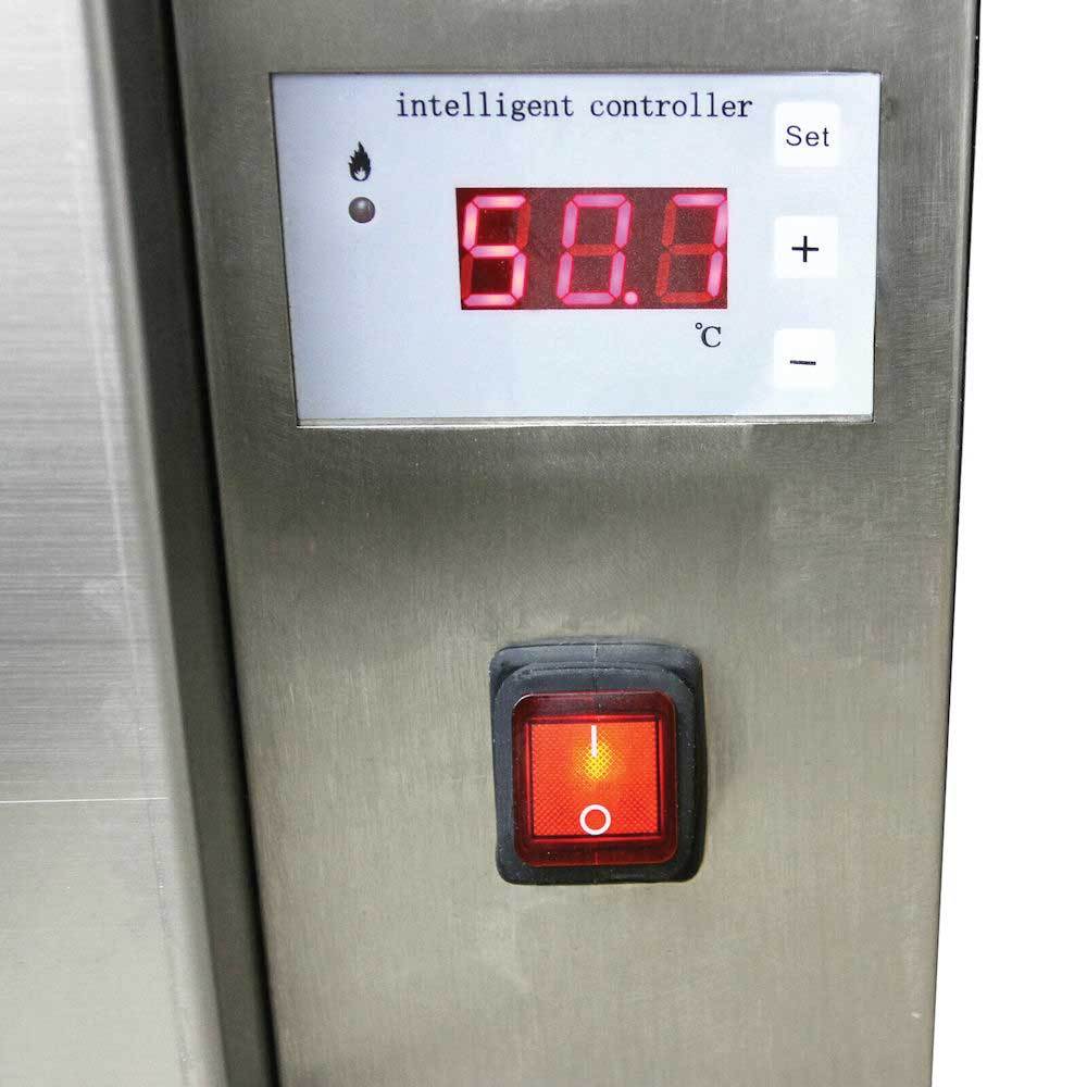 70 Litre Stainless Steel Poultry Scalder with drain basket, tap, thermostat and display screen for temperature control.