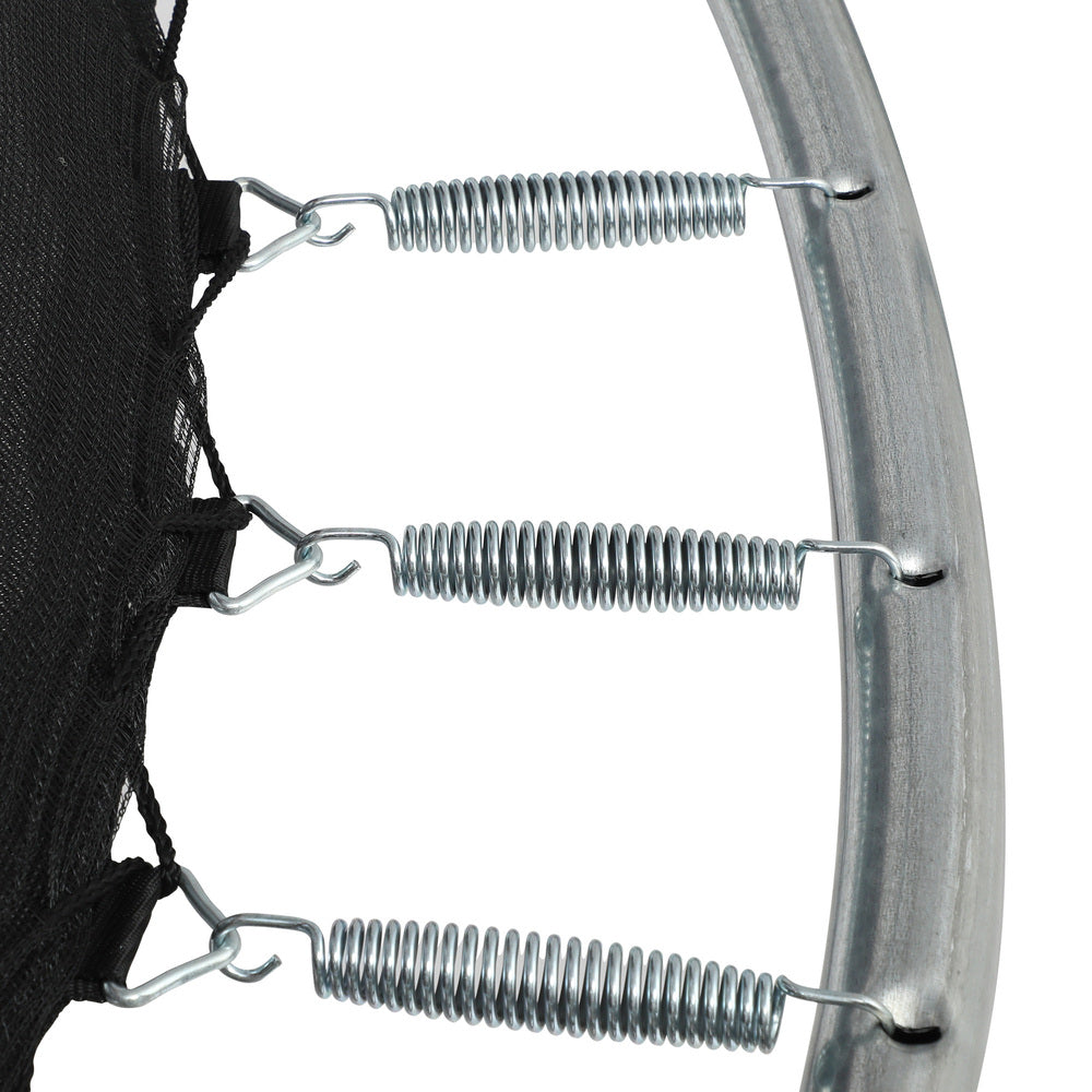 The trampoline is built to exacting standards for weather durability and long-lasting strength, featuring a heavy-duty galvanized steel frame, triple-rate springs, and a water-resistant jumping mat to handle robust play without compromising safety or performance.