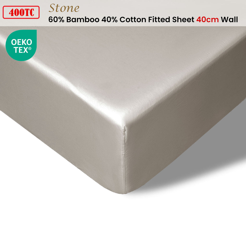 Accessorize 400TC Stone Bamboo Cotton Fitted Sheet 40cm Wall Single