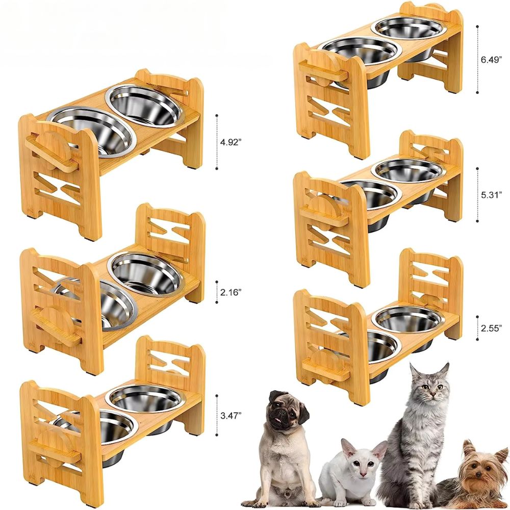 Crafted from durable bamboo, this feeder stand offers a natural, sturdy base that blends beautifully with any home decor. The adjustable stand makes it perfect for pets of all sizes, providing a comfortable height that reduces neck strain.