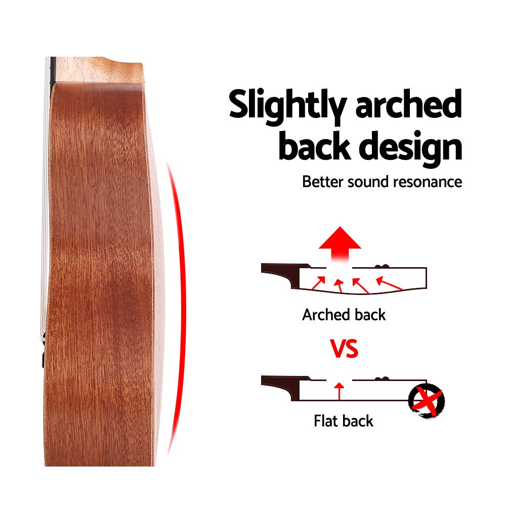 It is cute and handy. Easy to learn and play. And sounds great too. Our Alpha Ukulele promises to deliver hours of resounding fun as you sing and play your favourite tunes with wild abandon. Crafted from rich tone woods for a matt natural finish, our Ukulele features meticulous craftsmanship and quality components that others place a premium on. Such as the Mahogany top, back and sides, contoured back, rosewood fretboard, bone nut and saddle, premium nylon strings, decorative soundhole rosette and pre-installed strap pins on both ends of the body. Also included is a bonus carry bag to bring your music where it matters most. Among friends and an appreciative audience. So quit procrastinating and start your musical journey with the mesmerising sounds of the Alpha Ukulele. Get yours today.