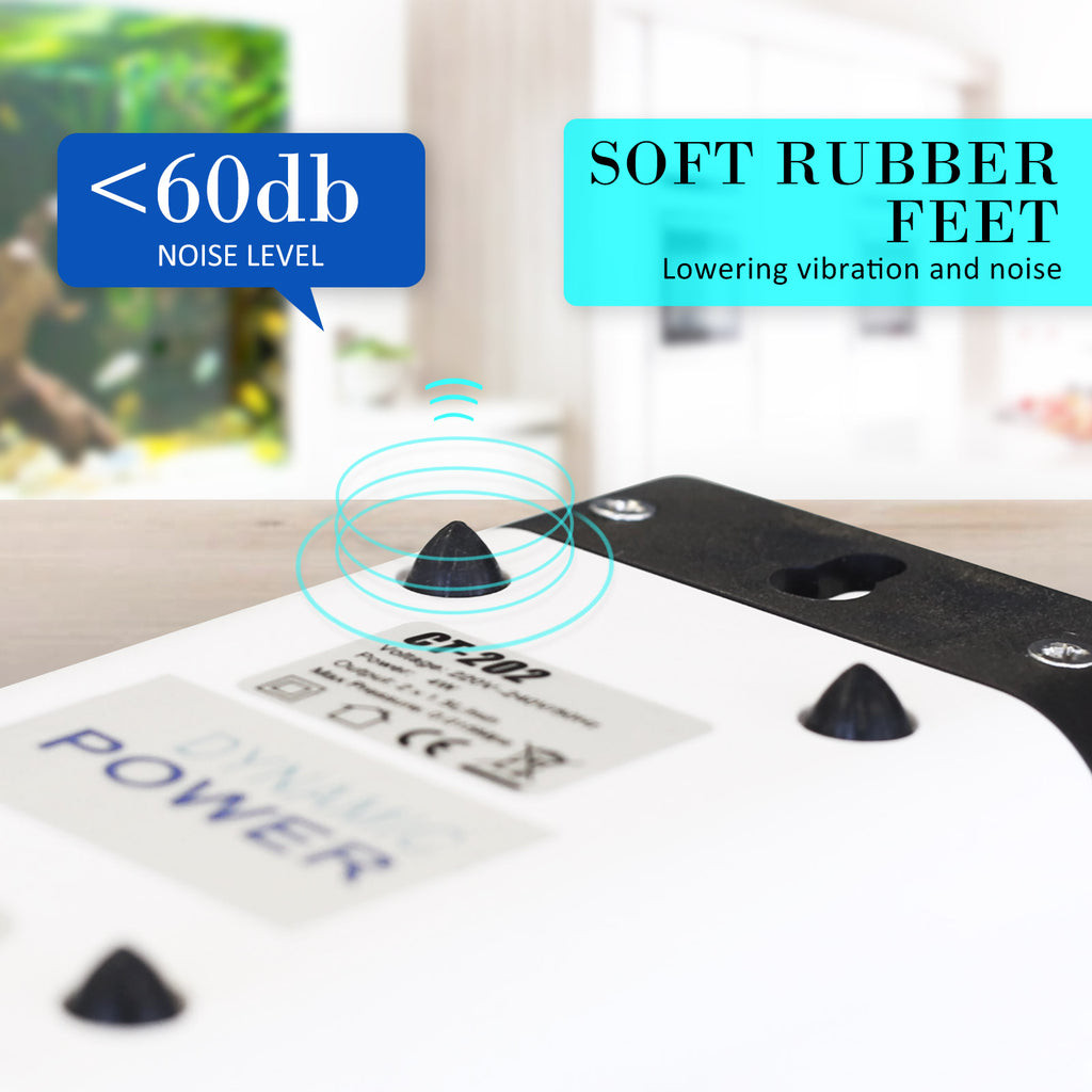 The dual air outlets allow you to create a more even airflow and maximise the effectiveness in spreading oxygen. Thanks to the Cube-Shaped design, the compressor of this air pump is very quiet and the new design added rubber feet to keep the vibration level to a minimum. The simple, yet efficient design also saves you precious space and also increases the service life.