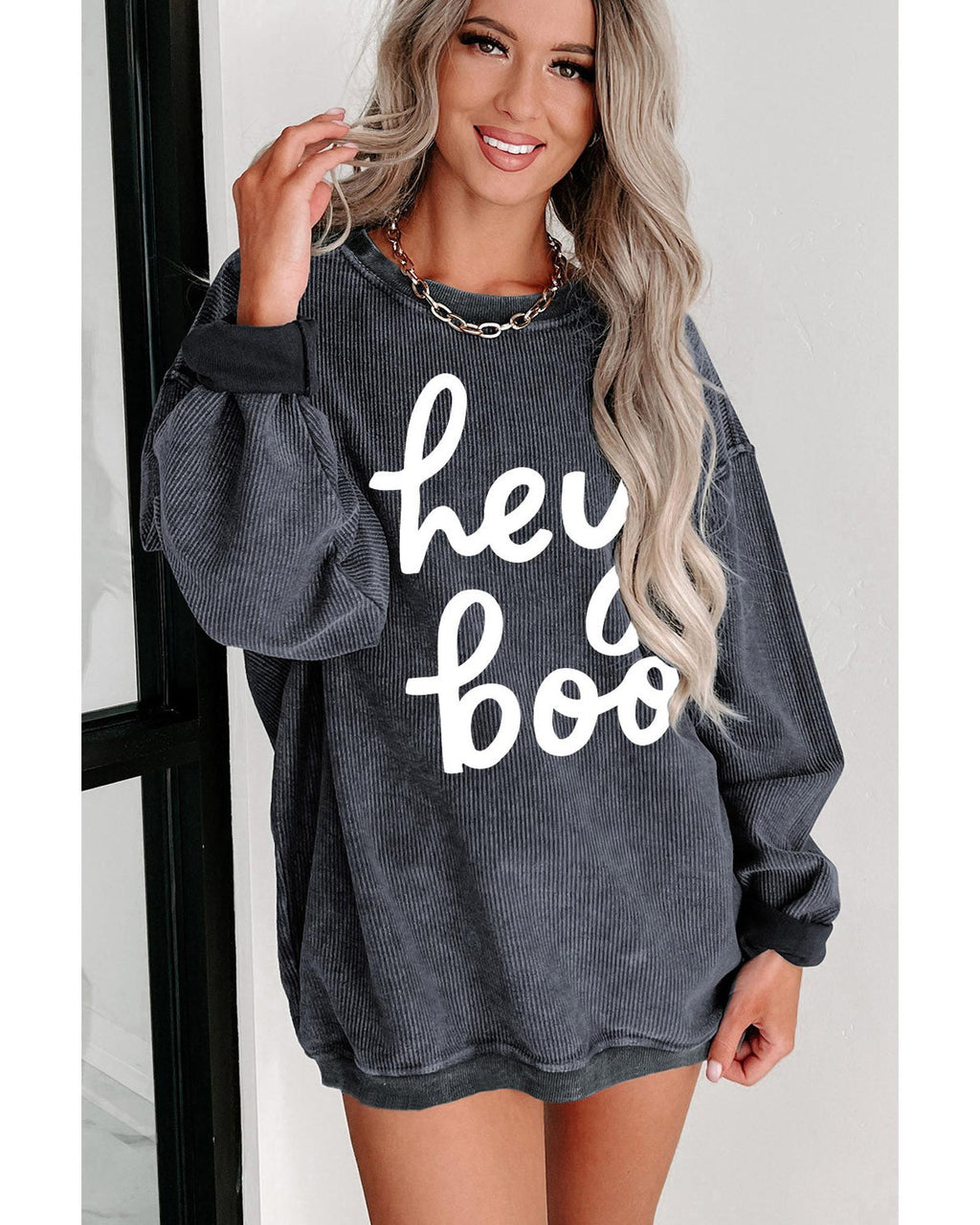 • Stylish and trendy Gray hey boo Graphic Corded Halloween Sweatshirt