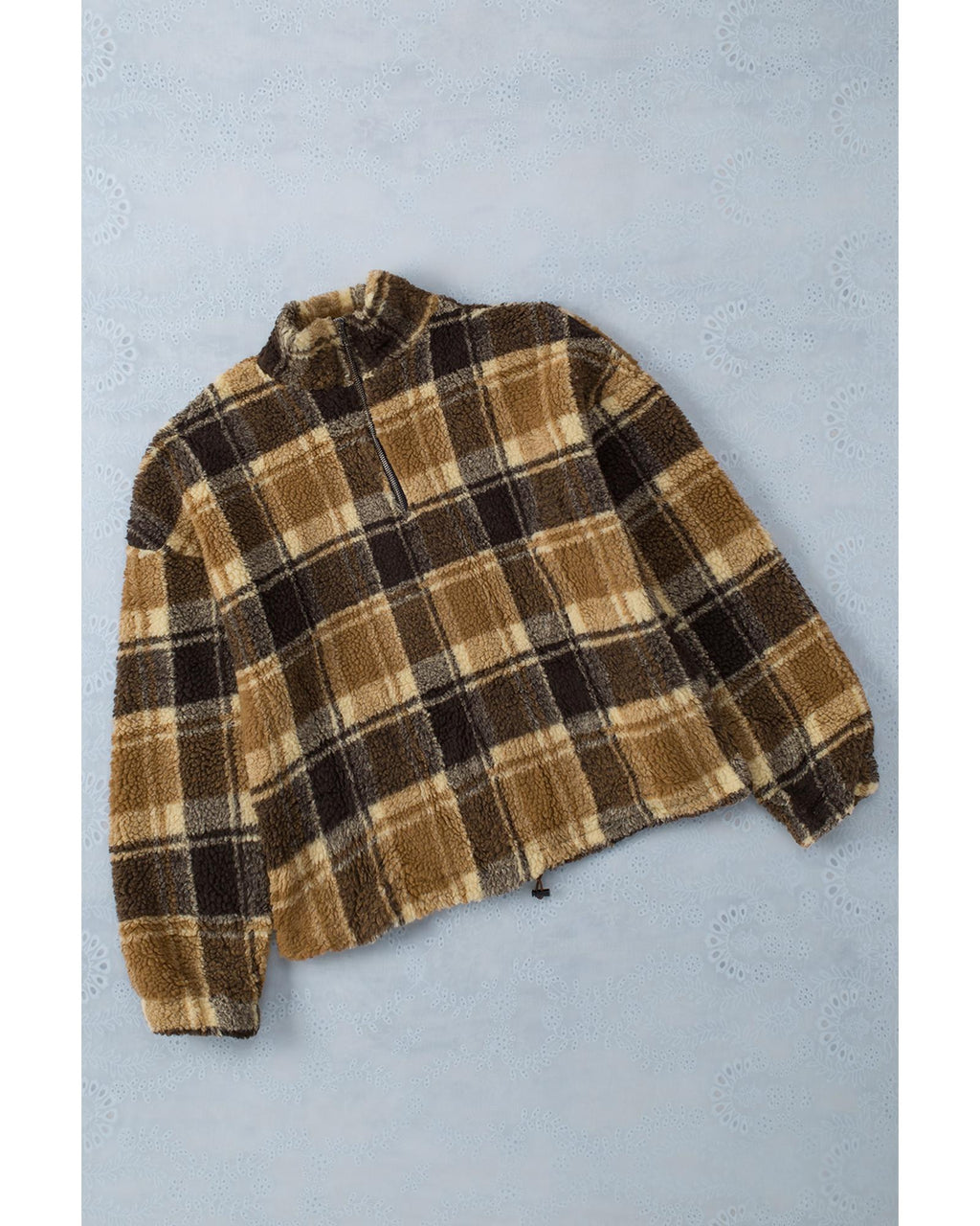 Azura Exchange Plaid Pattern Fleece Sweatshirt with Zip Collar - XL