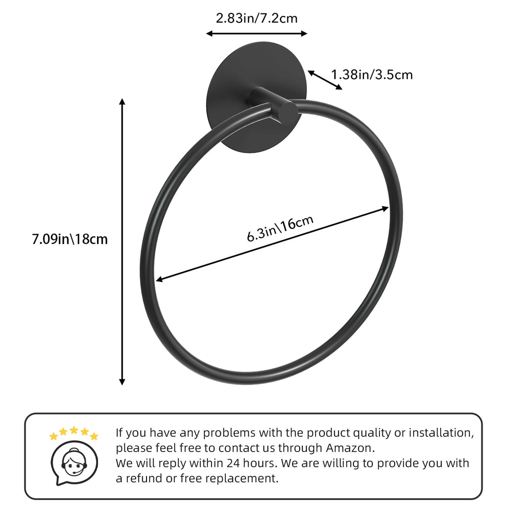 The black bathroom towel ring is made of SUS304 stainless steel, which prevents rust and corrosion in your bathroom for long lasting durability. The matte black surface bring unsurpassed beauty to your kitchen or bathroom.