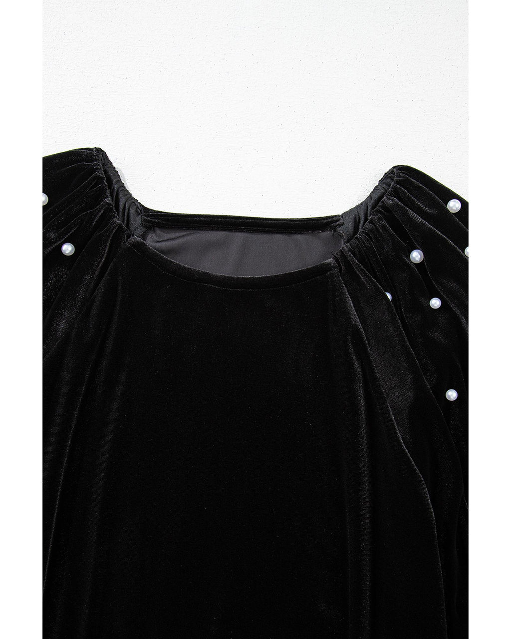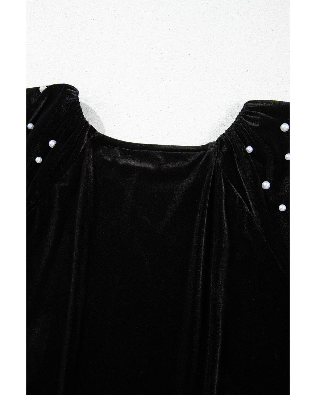 Black Pearl Beaded Half Sleeve Velvet Top - M