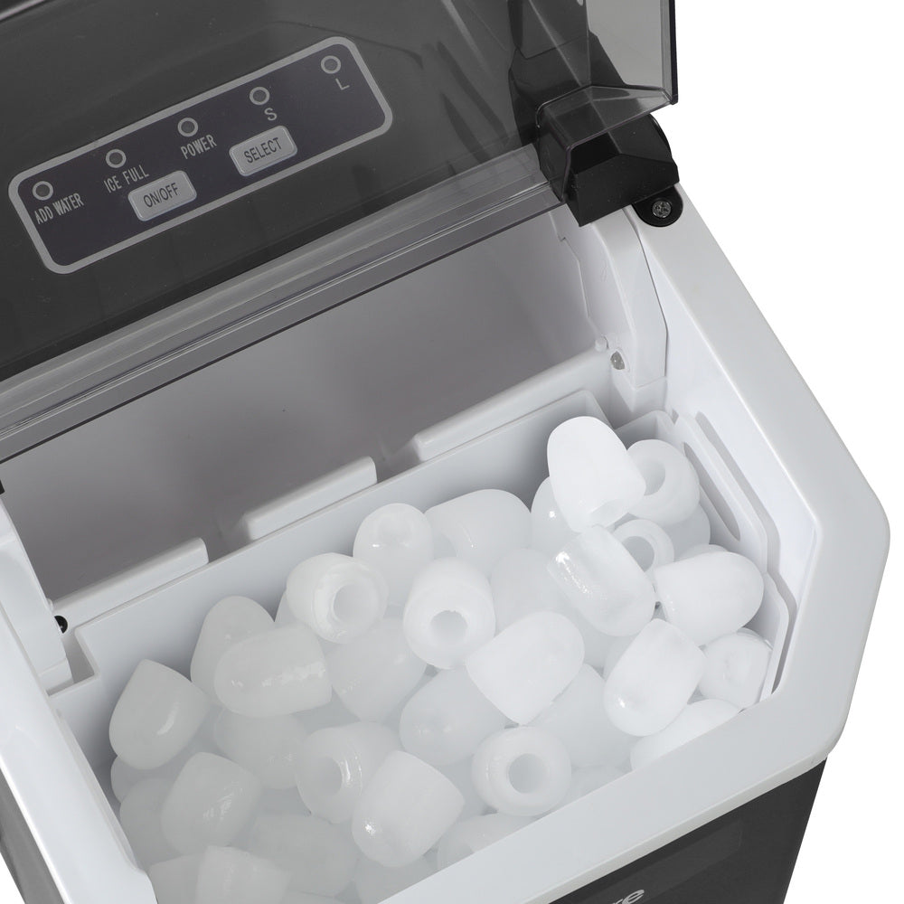 The unit features a 1.3 L water reservoir and can produce up to 12 kg of ice in 24 hours, with nine cubes per cycle. Choose between large or small ice cubes to suit your drink preferences, from frosty cocktails to hydrating water. A transparent lift‑up cover lets you monitor progress without interrupting the freezing process.