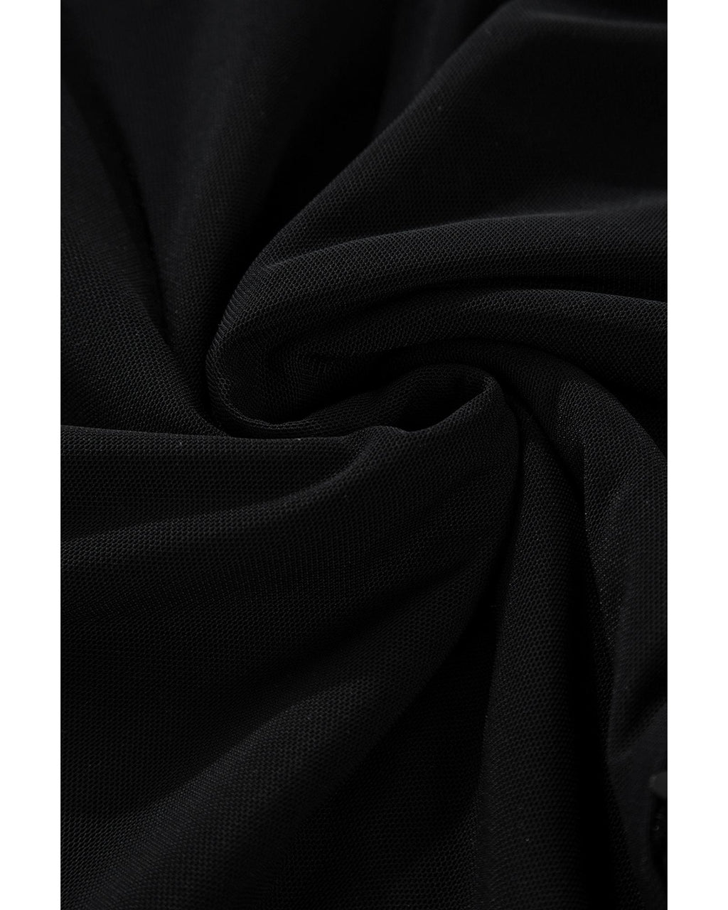 Black Sequin Velvet Sheer Mesh Mock Neck Blouse - M