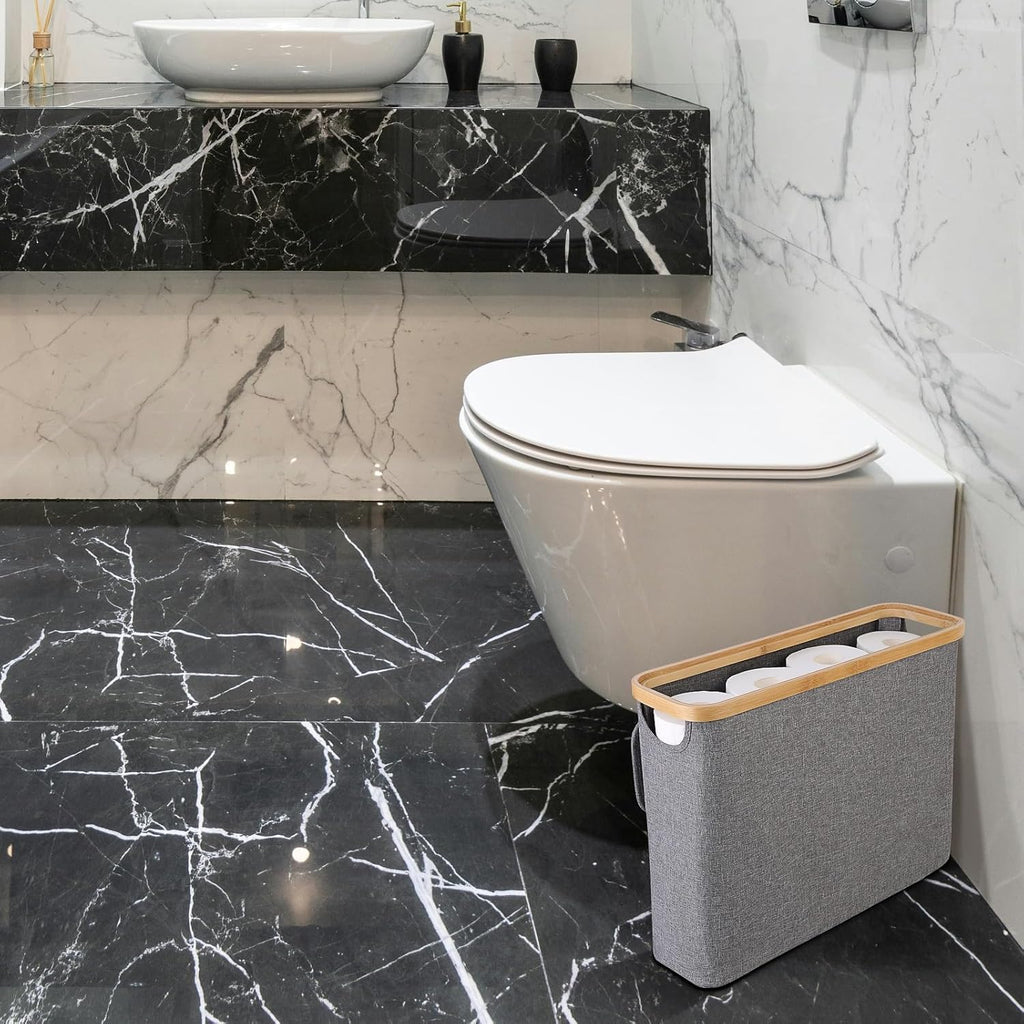 - LARGE STORAGE CAPACITY: This slim basket holds up to 12 regular toilet paper rolls or 9 jumbo rolls, helping you stay fully stocked and organized. A perfect fit for small bathrooms, closets, RVs, or under-sink spaces.