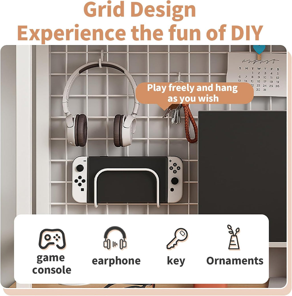 - CUSTOMIZABLE GRID PANEL DISPLAY: Personalize your desk setup with the integrated metal grid panel—perfect for hanging photos, keys, headphones, or decorative items. Includes bonus hooks for flexible organization.