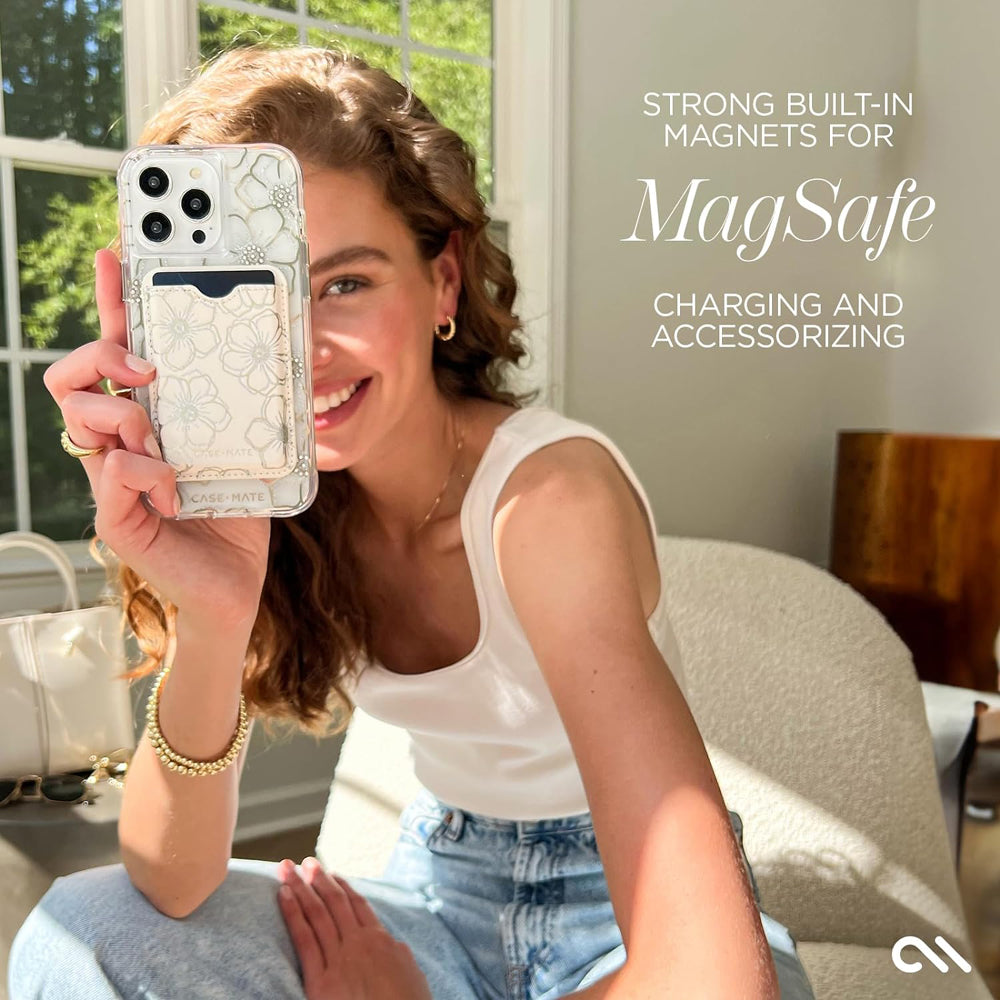 Introducing the Case-Mate Wallet Folio MagSafe Case, the epitome of style and functionality for your phone. Crafted with exquisite attention to detail, this case is made with premium materials, ensuring durability and a touch of luxury. With its convvenient built-in wallet, featuring multiple card slots and a dedicated window for your driver's license, you can keep your essentials organized and easily accessible. The raised edges of the case provide optimal protection for your screen and camera, safeguarding them from scratches and cracks. And to top it off, our case is MagSafe Compatible, ensuring a secure and seamless connection with your device. With the added bonus of a lifetime warranty, the Case-Mate Wallet Folio MagSafe Case offers the perfect combination of style, practicality, and peace of mind. Upgrade your phone case today and experience the ultimate in functionality and sophistication.