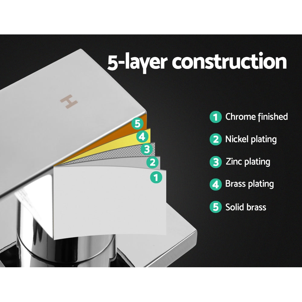 For a perfect mix of the right water temperature, our Shower Taps are simply convenient to use. The solid brass construction make this ensemble absolutely smooth and durable with a drip-free 35mm ceramic cartridge to prevent leakages. The brilliant chrome finish actually comprises a multi-layer finishing process with zinc, nickel and brass plating. The taps are marked as hot and cold markings for hassle-free use. Not least, the shower taps carry a WaterMark certification and comply with Australian standard AS/NZS 3718 for total peace of mind installation and use.