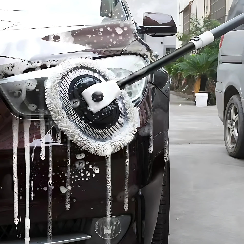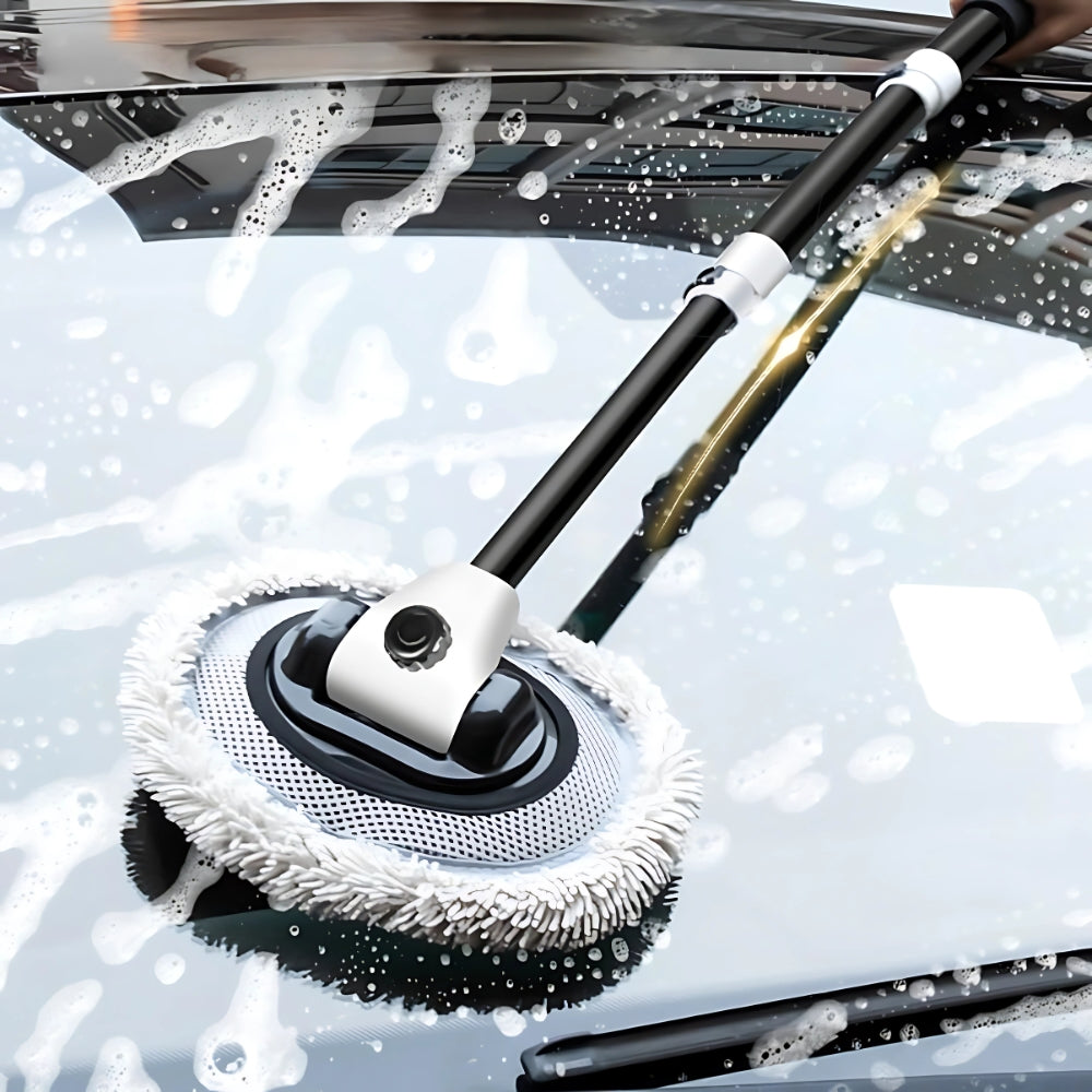 This car wash brush features a fantastic cleaning head that traps dirt and grime effectively. Its three-section expansion design allows for easier handling without bending down, making it perfect for reaching the roof, tires, and other parts of your car. The upgraded brush lever and handle, combined with the 15-degree bend, enhance comfort during use.