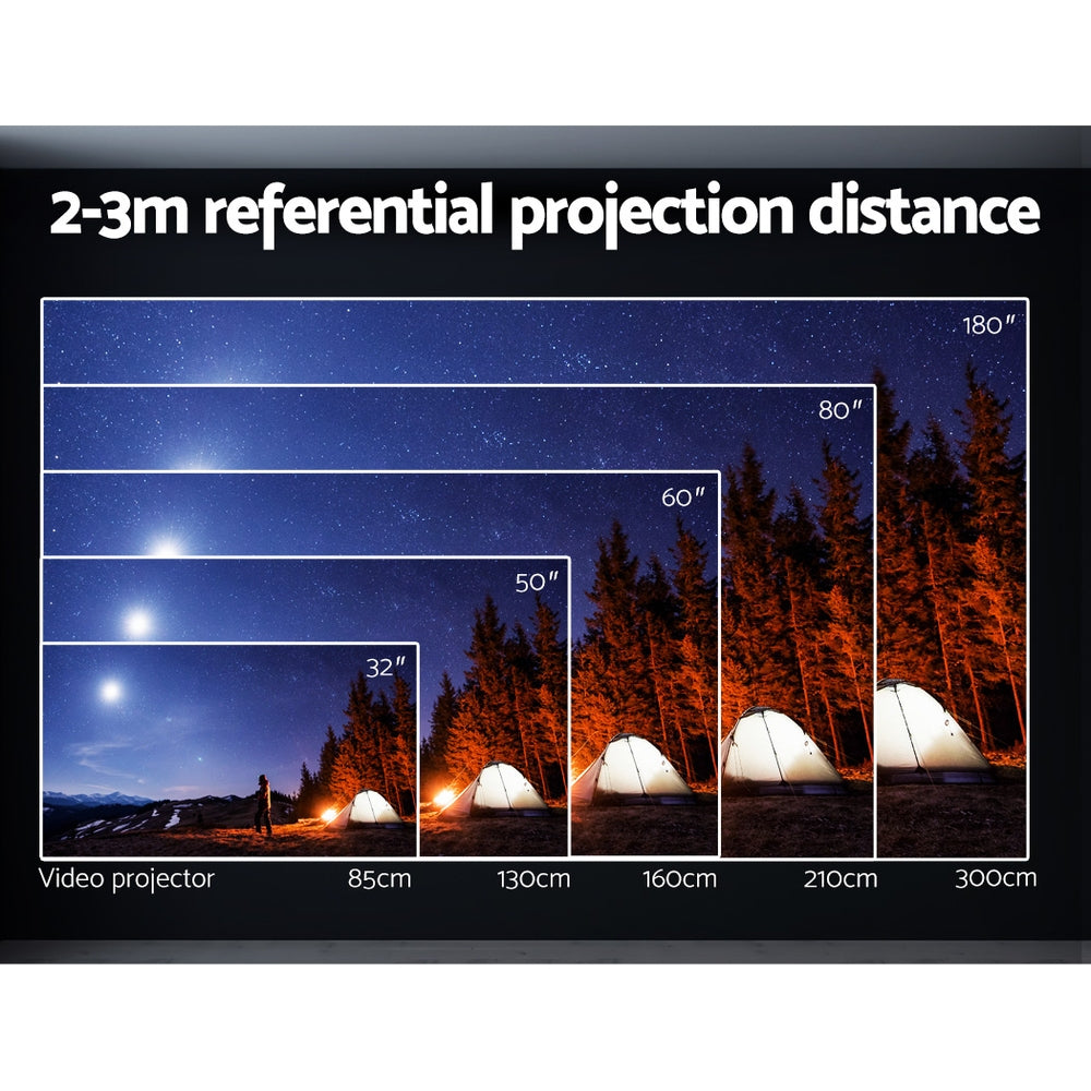 From the small screen to the big screen, now you can enjoy epic entertainment with our Devanti Video Projector. With its ultra-expansive colour gamut, the projector delivers crisp clear images with more brilliant colours to give you the best projection experience. The projector is compatible with 1080p and 4k, so you won't have to compromise on quality. Using 2.4G Wi-Fi connectivity, our video projector effortlessly supports screen mirroring from your Phone, Pad, smartphone, tablet or laptop, so you can stream content cable-free. It features a built-in speaker for clear sound, electrical zoom by remote so you can get a closer look, and a 360-degree flip for flexible viewing. For even more entertainment value, the projector includes HDMI, USB, AV and audio ports for fast connection to multiple devices such as external speakers, game consoles and hard disks. Get the home cinema experience and order today! Include remote control and additional AV audio and HDMI cables.