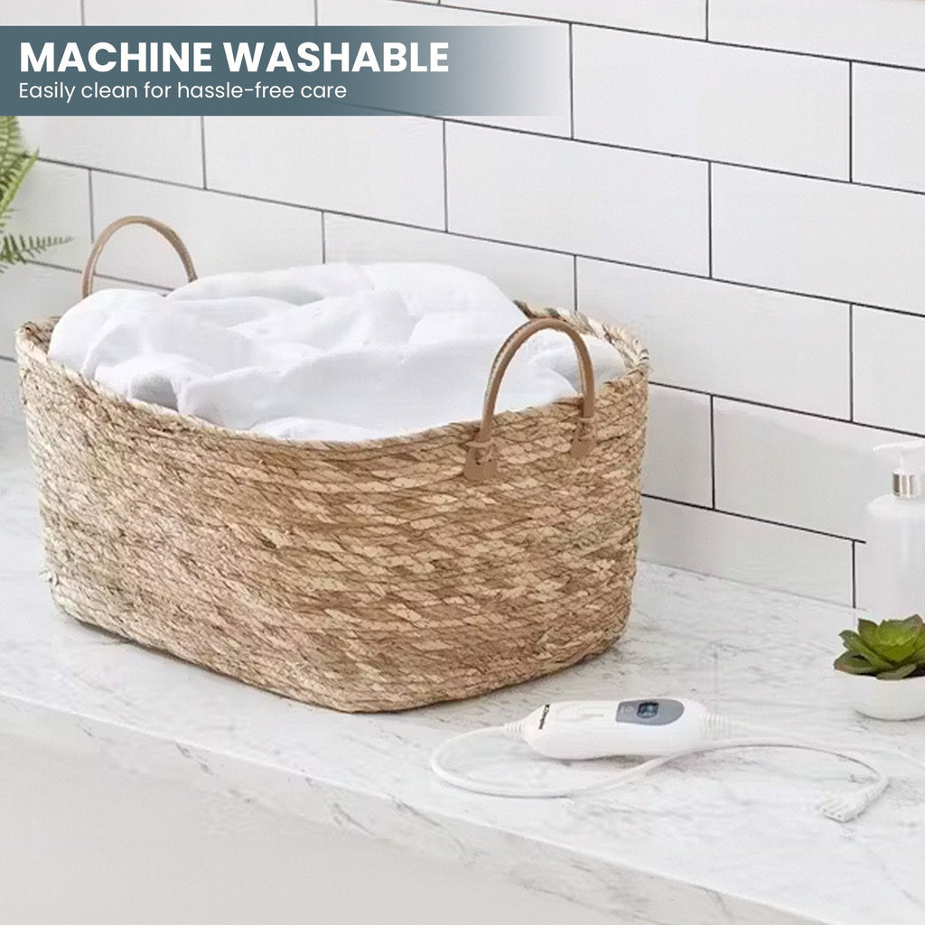 Experience comforting warmth with the Dream Easy King Fitted Electric Blanket by Dimplex. Relax in comfort knowing SensorSafe technology guards against overheating, giving you peace of mind all night. Featuring a snug, non-woven polyester fit, this blanket offers plush comfort to the touch. Whats more, this electric blanket is easy to clean with its machine-washable design!