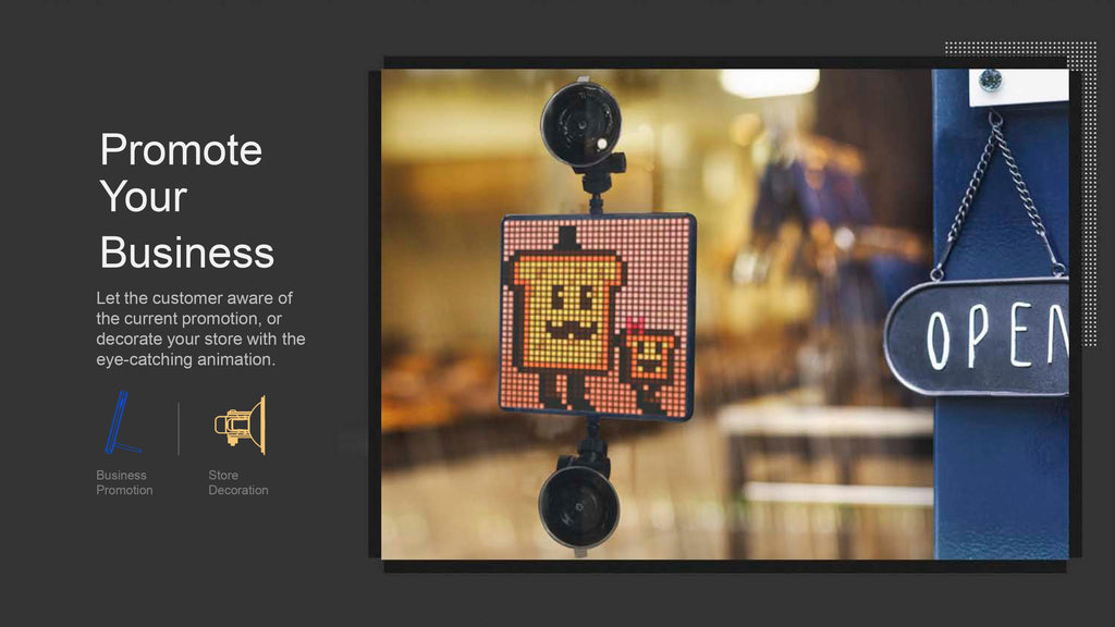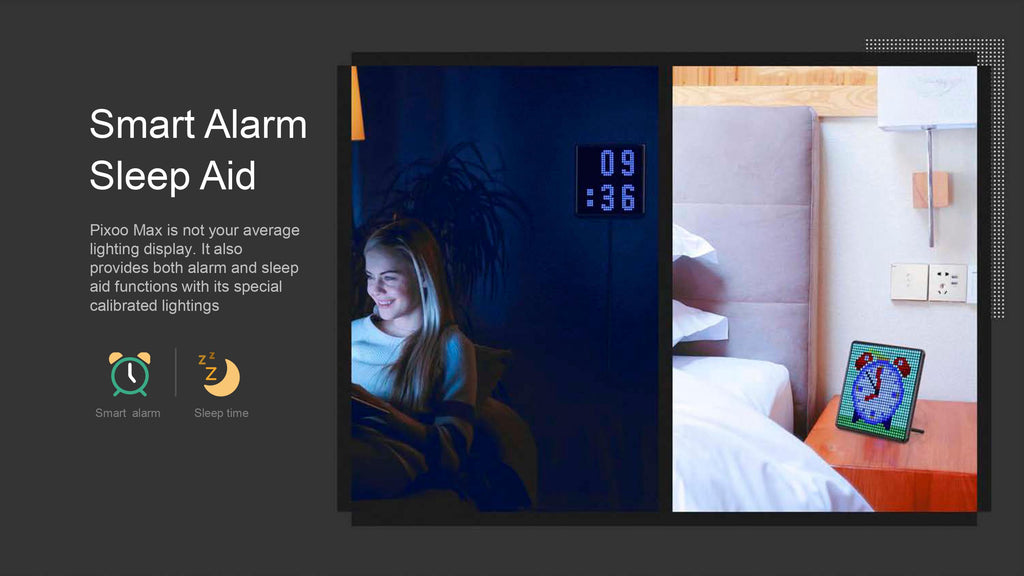 Pixoo-Max features 32x32 pixel size, alarm and sleep aid functions with its special calibrated lightings. You can mount your Pixoo max at a window or wall. Light up the room and enjoy the finest visual experience