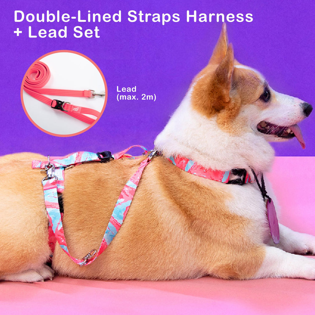 Banhamsisun M Dog Double-Lined Straps Harness and Lead Set Leash Adjustable No Pull - Neon Carol-Pink
