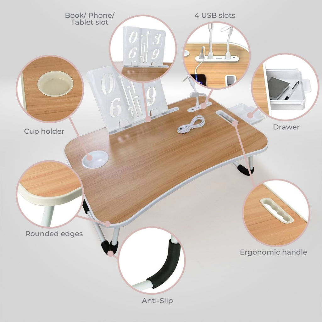 - 1x Ekkio Multifunctional Portable Bed Tray Laptop Desk with USB Charge Port (Burlywood)