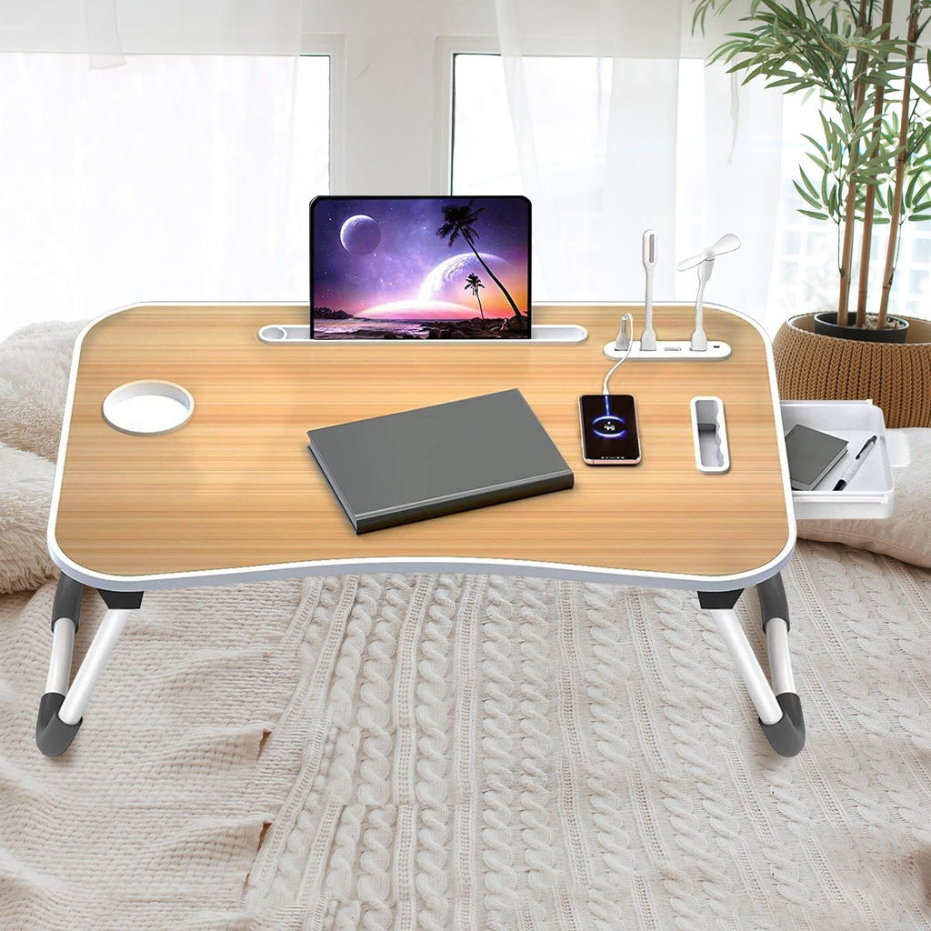 Ekkio Multifunctional Portable Bed Tray Laptop Desk with USB Charge Port (Burlywood)