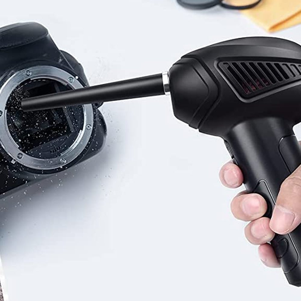 It comes with a built-in 6000mAh Rechargeable battery operated, high-speed 45000rpm air blow for about 30 minutes, can be widely used for sofa, computer, keyboard, air conditioner, camera lens, etc. 15000 rpm low-speed compressed air for about 4 hours, suitable for fast burning BBQ charcoal, etc.