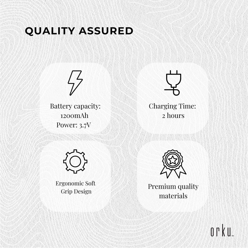 The Orku Electric ear wax cleaner gently cleanses the ears without harming the sensitive skin, effectively removing wax, dirt, and debris. Simply fill the basin with warm water, flip the nozzle, and spray. Use this rechargeable ear cleaner exclusively with warm water to avoid dizziness caused by room temperature or cold water. Waterproof rating of IPX6 allows versatile use in the shower or over the sink. The electric ear cleaner features three water pressure levels normal, soft, and strong.
