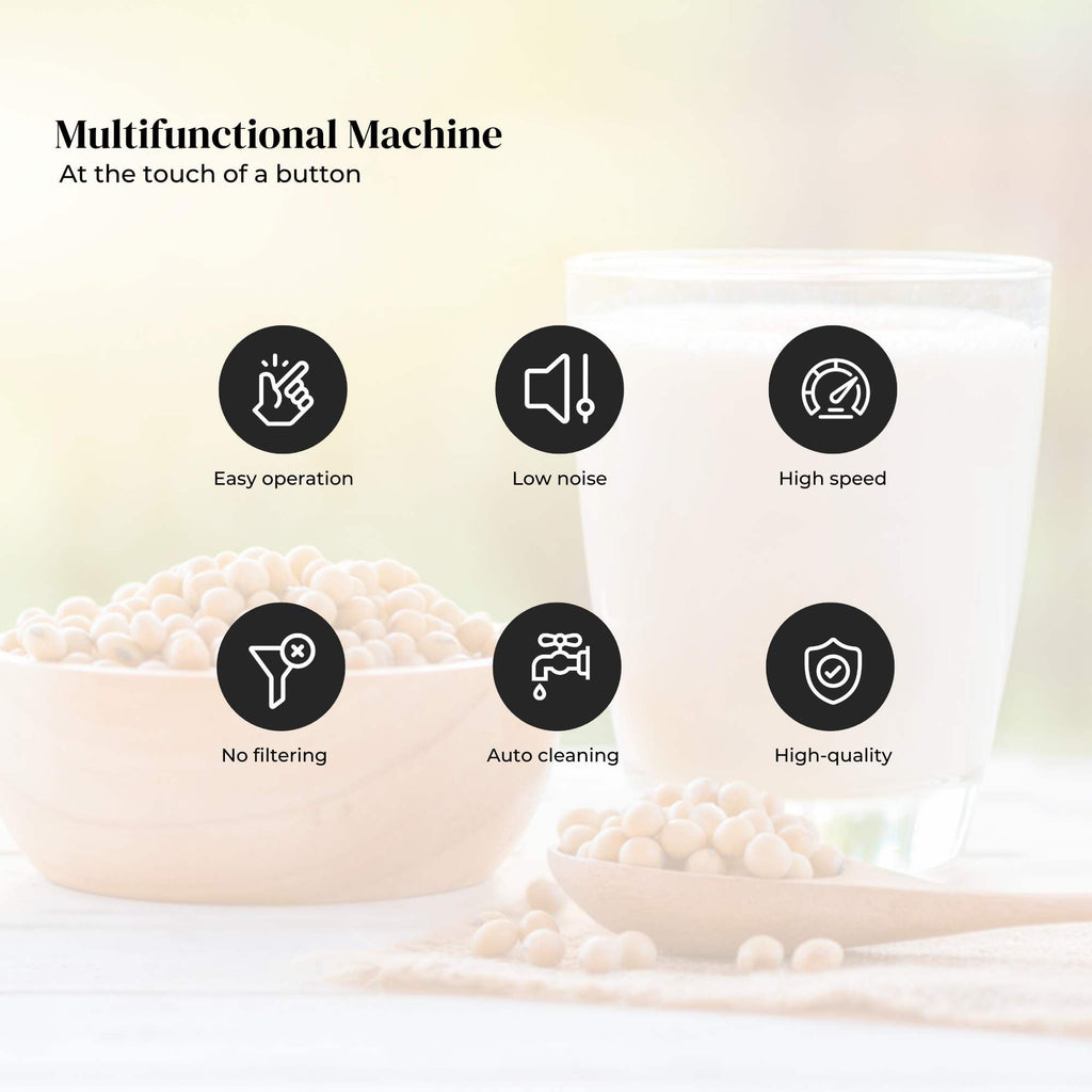 No soaking or filtering necessary for a smooth and fine taste, the Soy Milk Maker heats, blends and produces milk and other foods simply, quickly and easily all in one appliance at the press of a button.