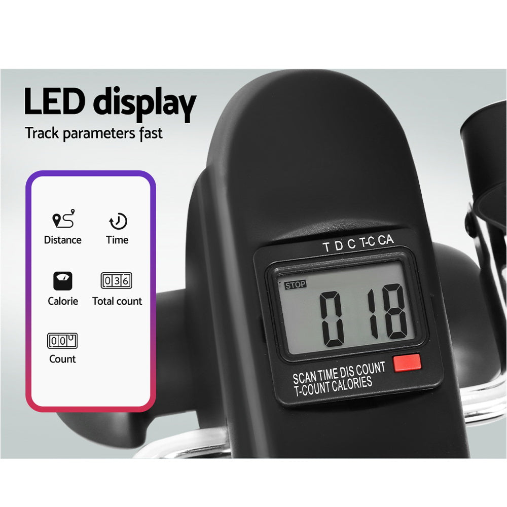 Be ready to exercise any time with the Everfit Pedal Exercise Bike. The machine is lightweight and portable, meaning you can use it anywhere – from your couch, home gym, living room, or on the go. Engage both your upper and lower body muscles with different exercises for an even workout. Comfortable pedal straps on top of wide foot pedals will keep your feet in place, and adjustable resistance levels keep you performing at your peak. A sturdy frame and non-slip feet keep you and the machine firmly in place, and the quiet load bearing means you can exercise silently without disruption. The clear multi-function LED display shows several exercise parameters such as time, distance, speed and total calorie count. Best of all, the machine comes fully assembled and ready to perform. Get moving from anywhere with a Pedal Exercise Bike from Everfit.