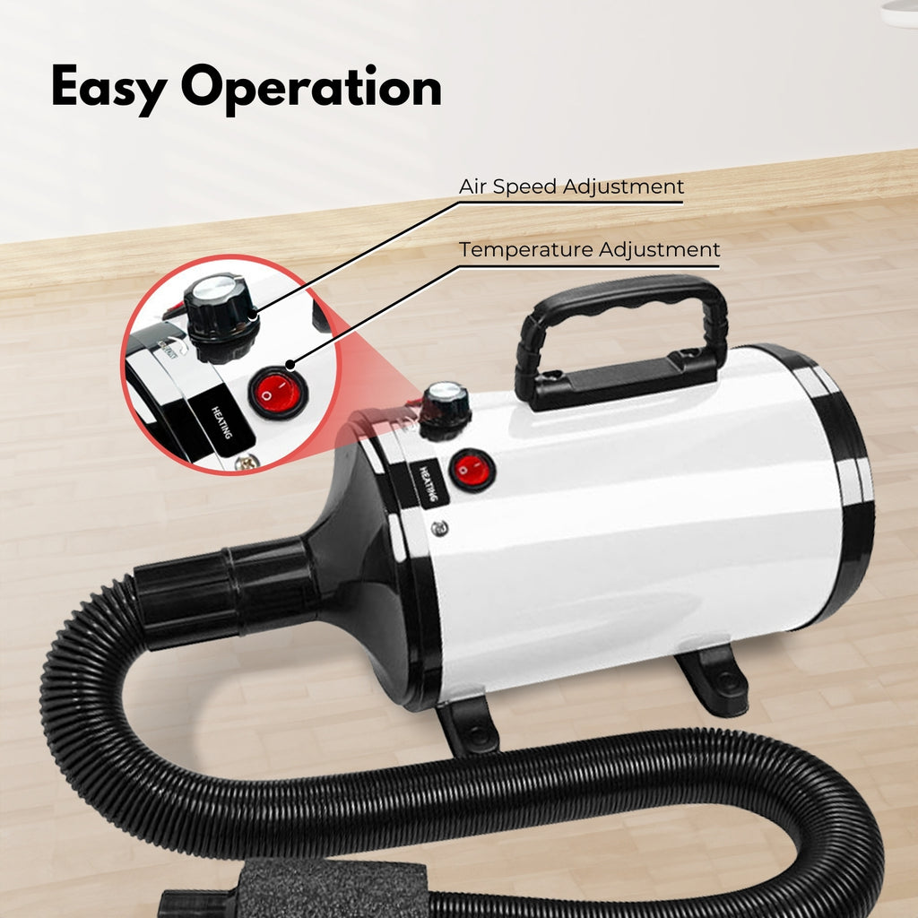 Fur Protection with Convenient Airflow and Thermal Control: Ensure the safety and comfort of your pet's fur with convenient airflow and thermal control features. This pet hair dryer offers precise control to prevent overheating and protect your pet's coat during the drying process.