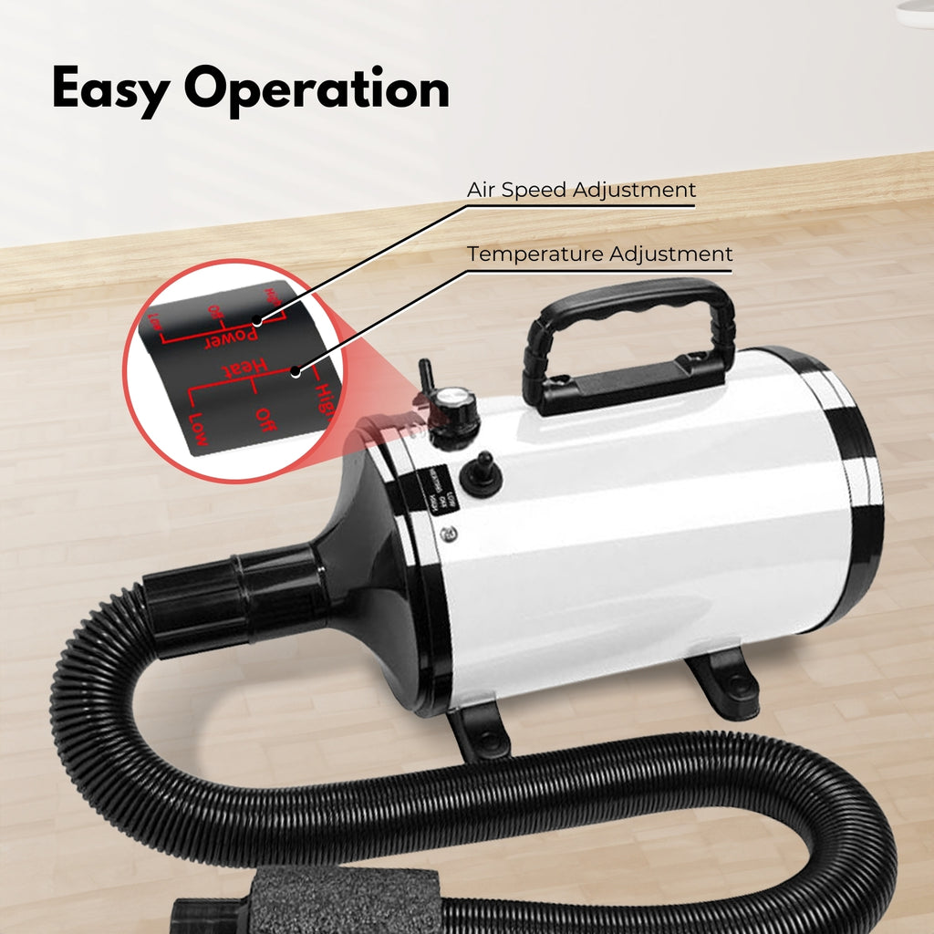 Customizable Drying with 2 Stages of Wind Speed and Temperature: Enjoy flexibility in grooming with adjustable two stages of wind speed and temperature. This allows you to customize the drying conditions based on your pet's comfort and specific grooming requirements.