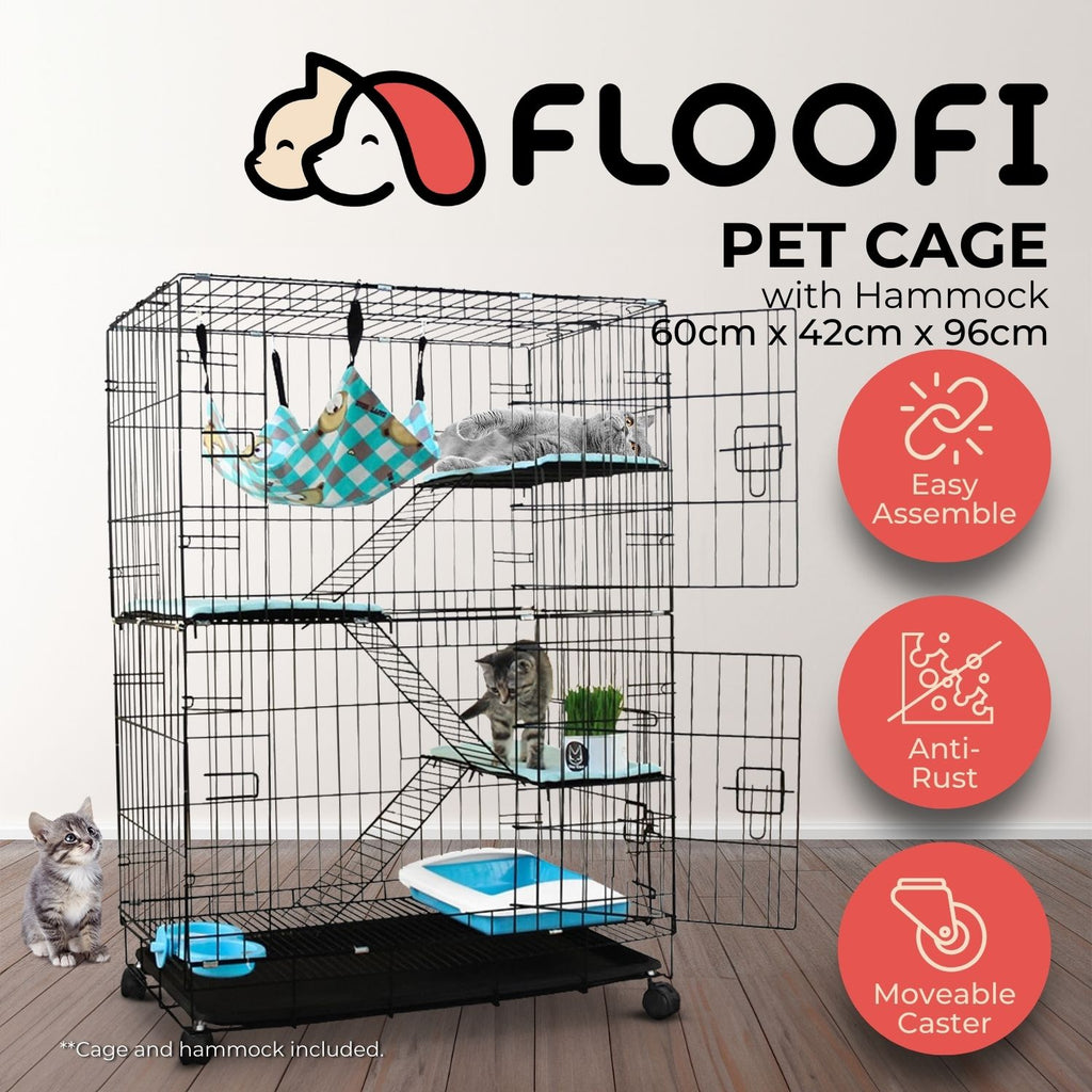 Introducing the Floofi Deluxe Three-Level Pet Rabbit Bird Cage with Hammock - the ultimate solution for providing your pets with a spacious, secure, and comfortable living environment. This meticulously designed cage combines functionality and style, offering a range of key selling points that will surely impress both you and your beloved pets.