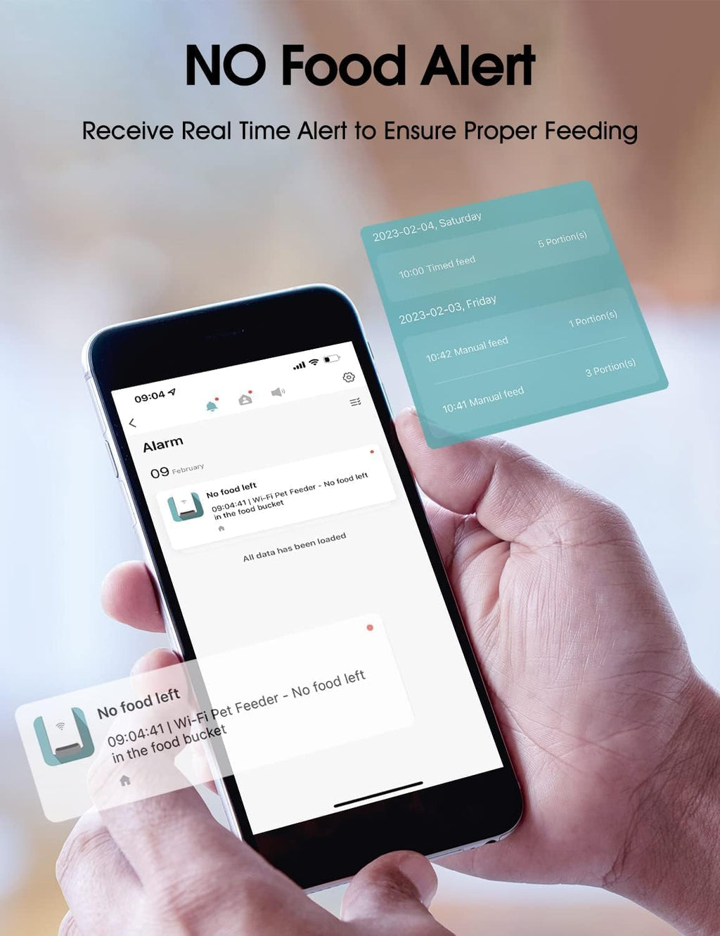 Stay informed about your pet's food status with alarm functions for low food, no food, and food stuck situations. - High-Quality Motor with Self-Protection: Equipped with a high-quality motor featuring self-protection, ensuring reliability with a working life of up to 200 hours.