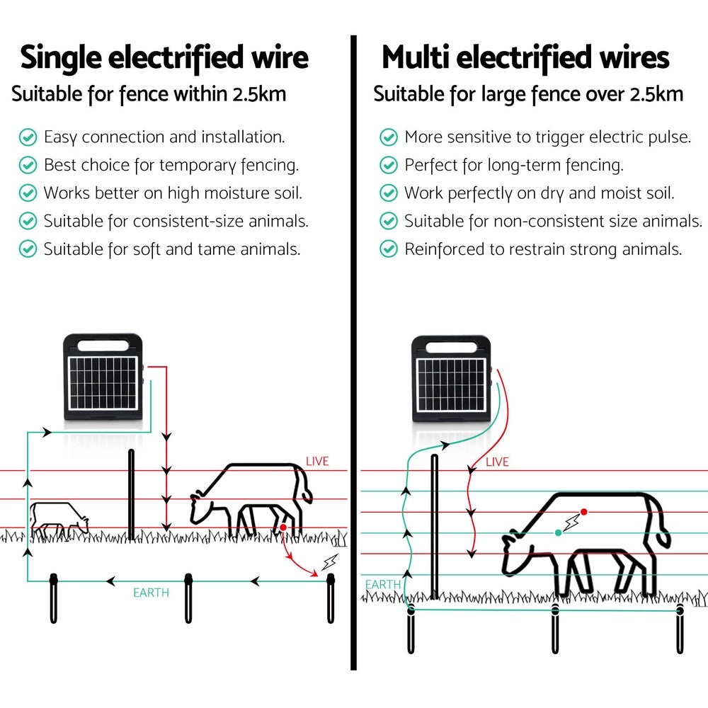 Ever worried about livestock and animals escaping your property? This Solar Electric Fence Energiser is the ideal product for you. Whether for the farm or just around your suburban home, the solar fence energiser can perform effectively in either environment. No need to worry about the rain; the energiser is also water-resitant. If the fence is activated by an animal, the unit will generate a brief pulse as the voltage will drop to prevent harmful electric shocks. Featuring a simple installation design, you can have it up in a matter of minutes. Compact, lightweight and versatile, the solar fence energiser is an effective low maintenance solution to protect your property and livestock.