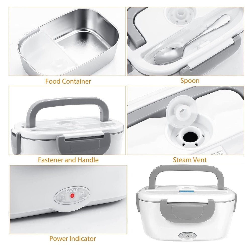- Packing Includes: 1x 304 stainless steel inner box, 1x stainless steel spoon and fork, 1x plastic spacer box, 1x leakproof sealing ring, 1x heat insulation bag, built-in pocket zipper, can store the power cord