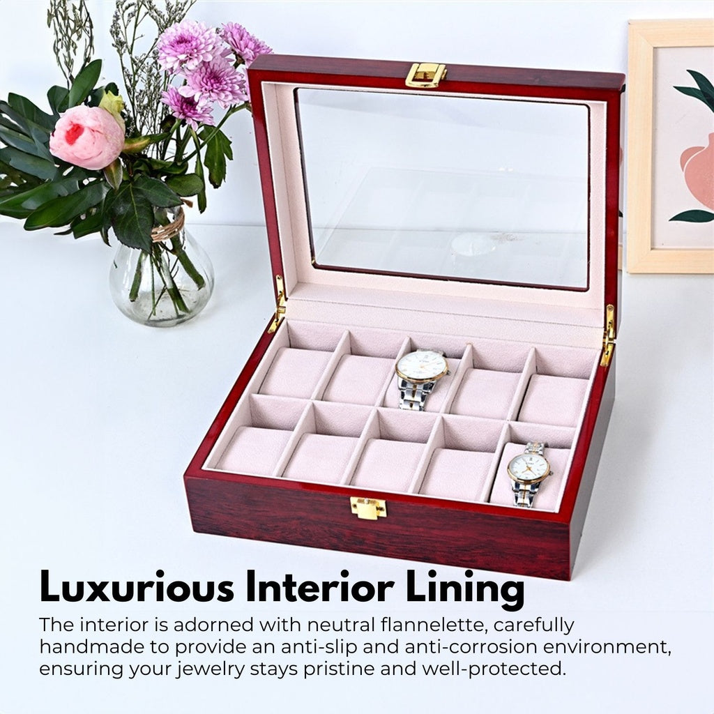 Gominimo 10 Grids Watch Holder Box Red Wood Storage Case Display Organizer (Red)