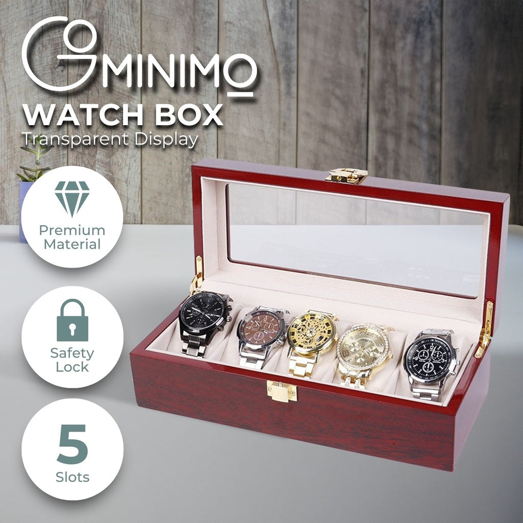 The Gominimo 5 Grids Watch Holder Box is an elegant and practical storage solution for watch enthusiasts. This watch holder box features 5 compartments designed to securely display and organize your favorite timepieces. Its sleek design and sturdy construction make it an ideal addition to any dresser or nightstand, offering both protection and style for your watch collection. Perfect for keeping your watches safe and easily accessible, the Gominimo Watch Holder Box combines functionality with a sophisticated aesthetic.
