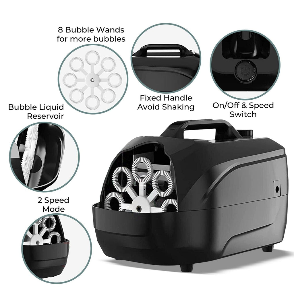 Capable of producing an astounding 4000+ bubbles per minute, make every moment truly magical with a cascade of bubbles that will enchant the atmosphere with a sense of wonder. - Light Weight and Portable: Enjoy our Bubble Blower Machine anywhere you go. Designed to be lightweight and portable, you can effortlessly transport it to any event or gathering and fill any location with bubbling fun.