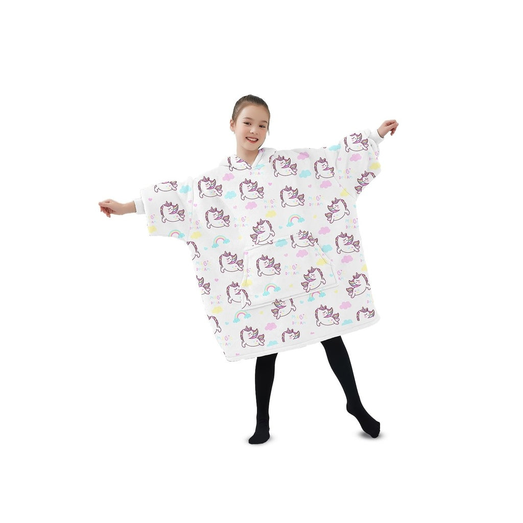 - Package Content: 1x Kids Hoodie Blanket (Unicorn White)