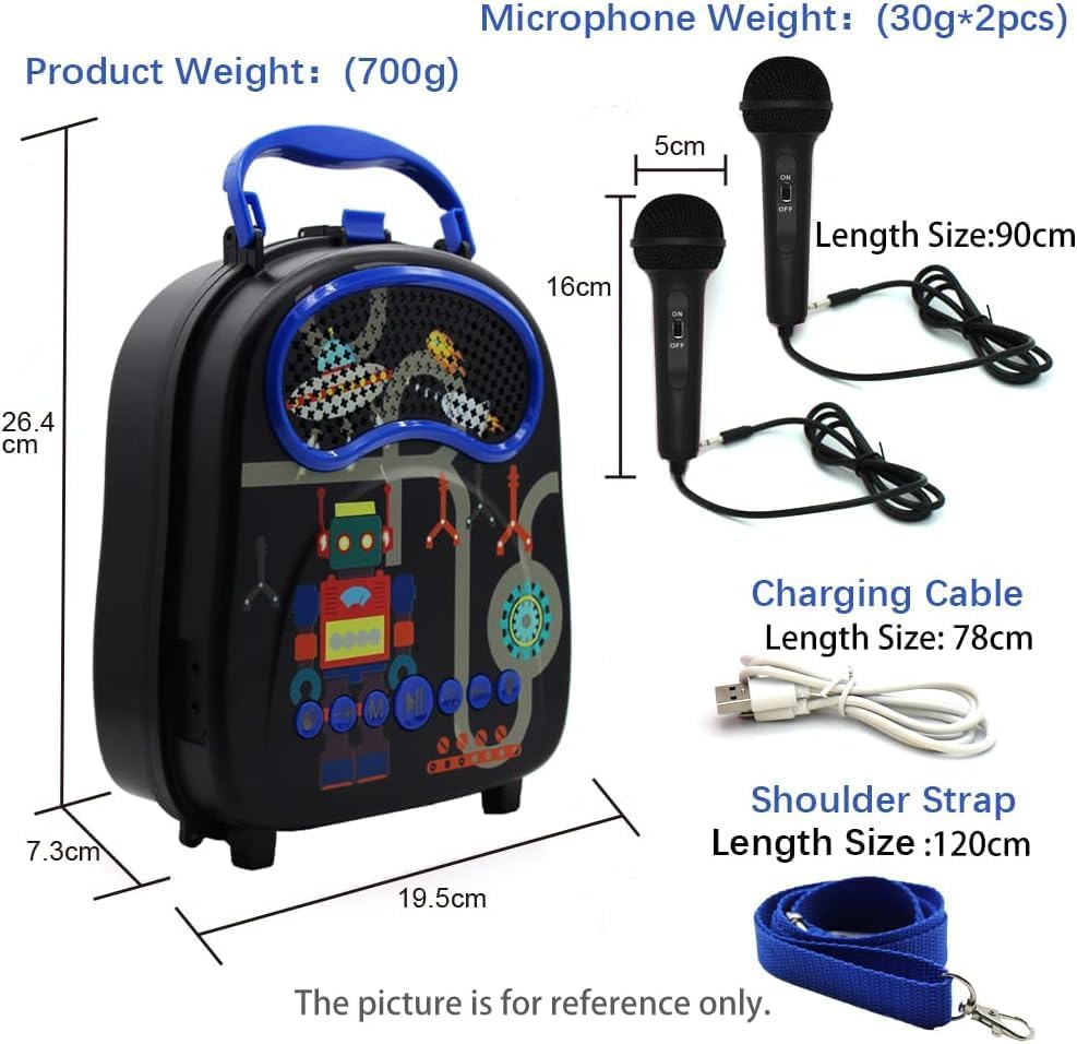 Features1x GOMINIMO Kids Portable Karaoke with Two Microphones (Rectangle, Black Robot)