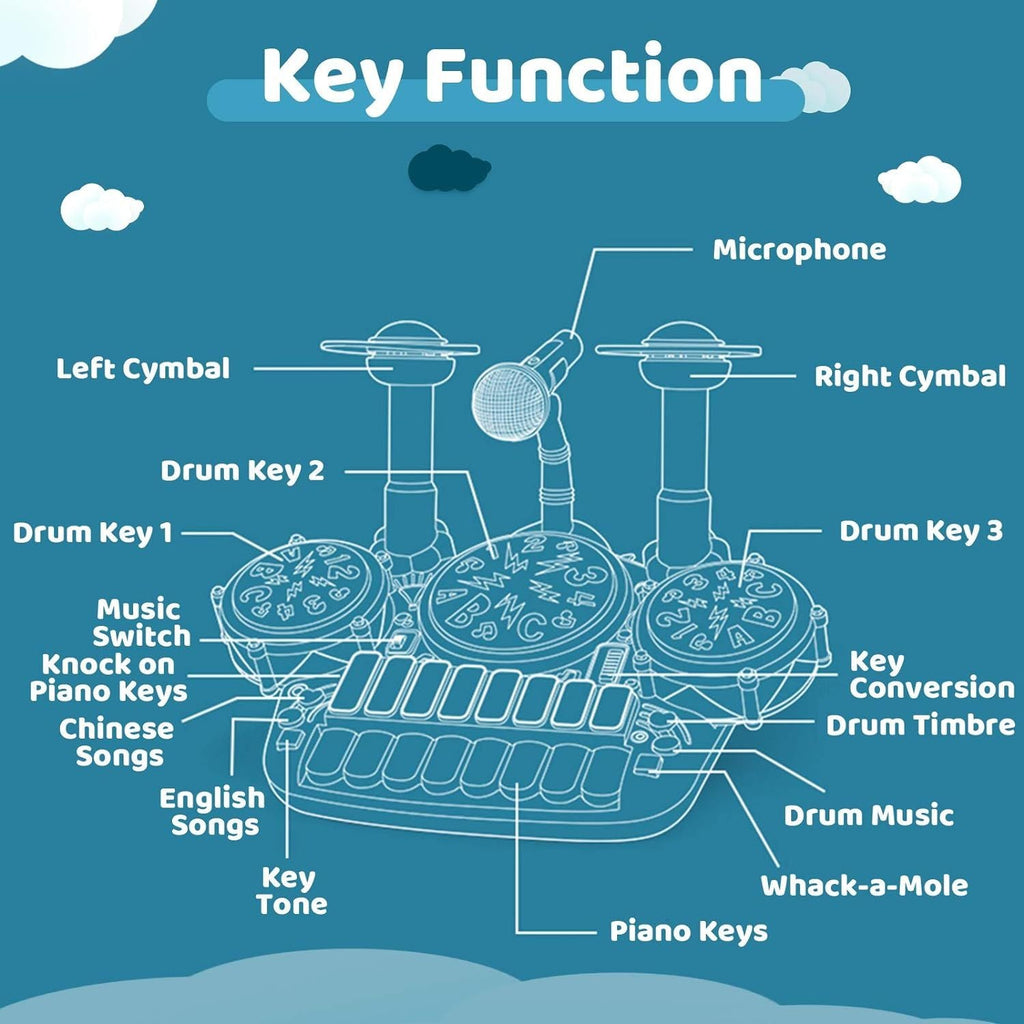 Transform playtime into an engaging experience with the Whack-a-Mole feature of this drum set. Kids can enjoy the excitement of hitting moles, adding an extra layer of interactive fun. -