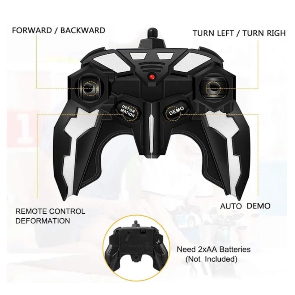 - 1x transforming car, 1x remote control, 1x USB charging cable, 1x rechargeable battery