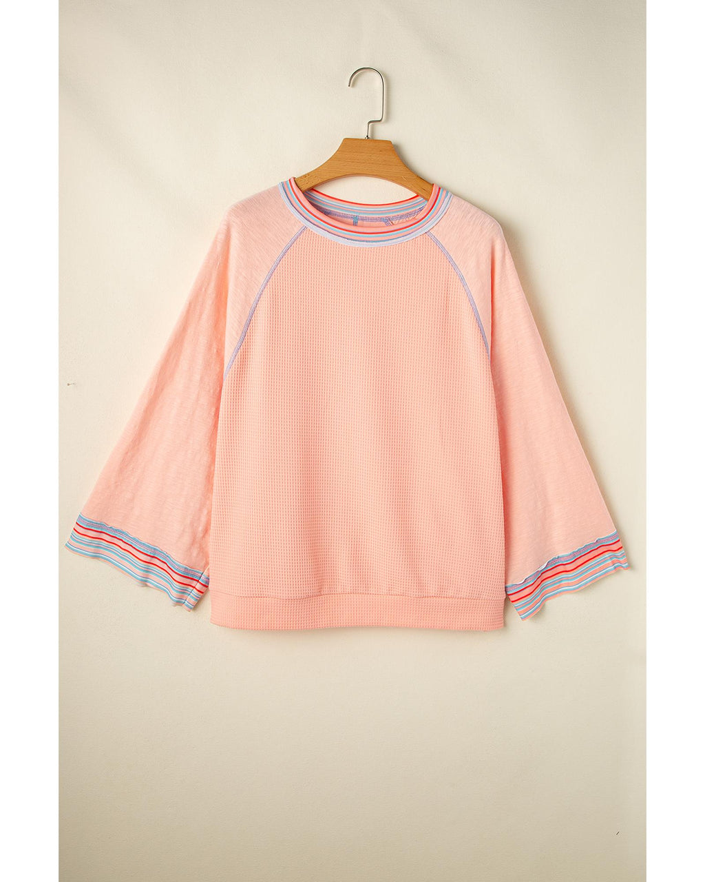 Grapefruit Orange Waffle Knit Wide Bracelet Sleeve Patchwork Raglan Top - L
