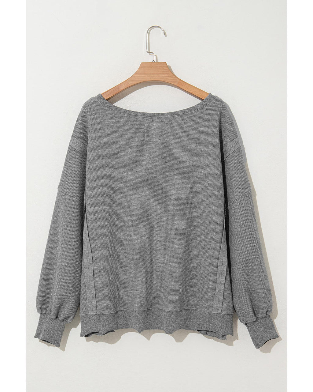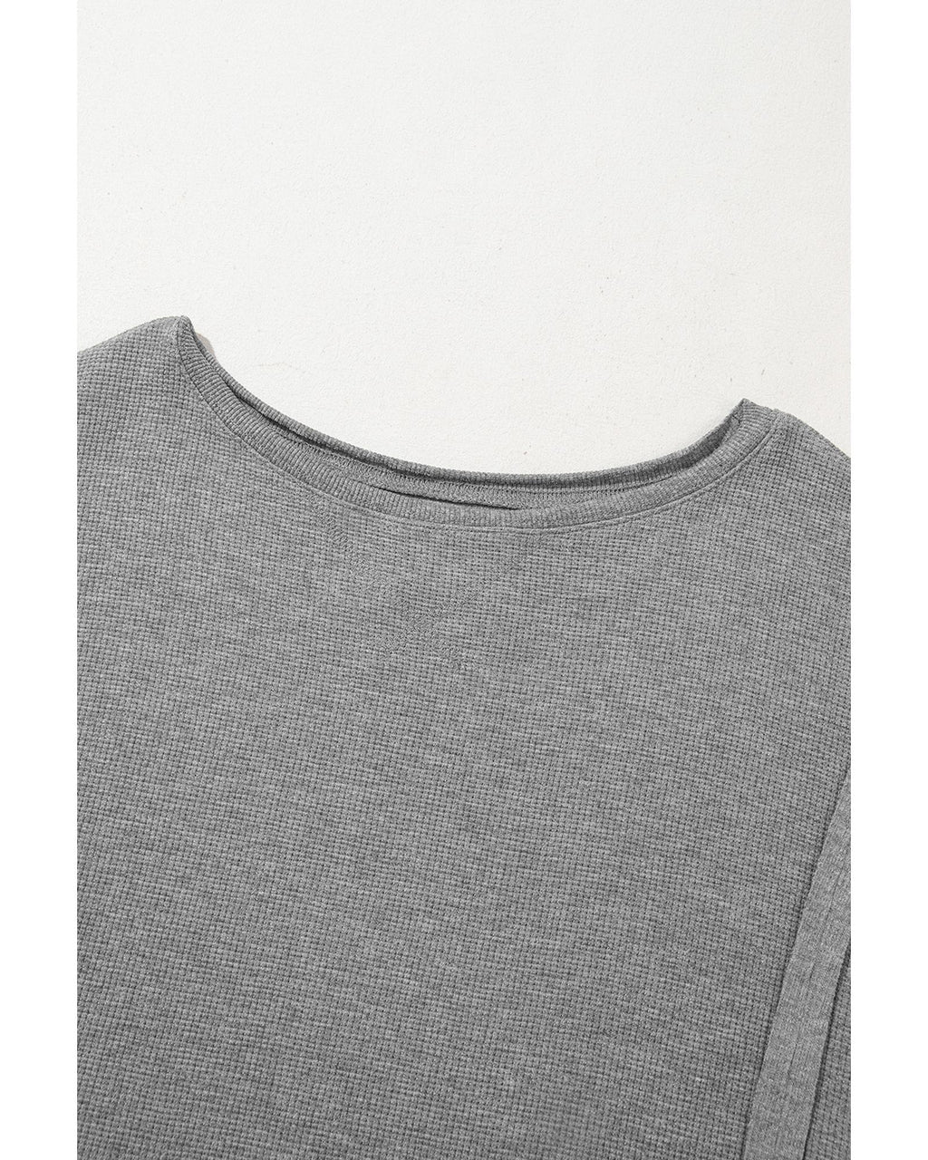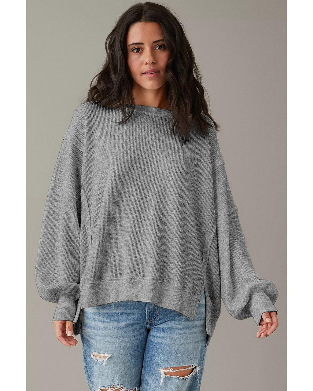 Gray Waffle knit Bishop Sleeve Split Oversized Top - L